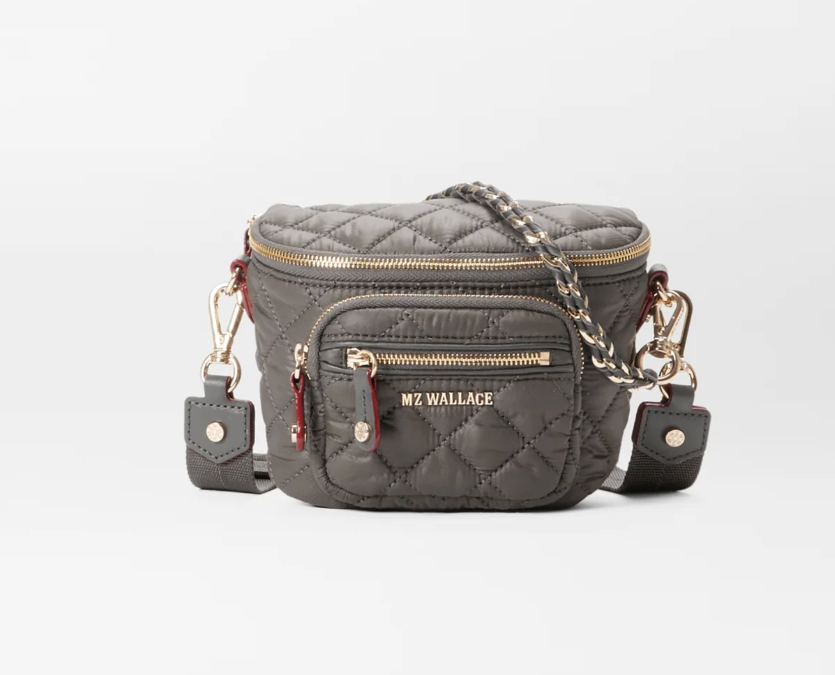 - Detachable, adjustable nylon crossbody strap