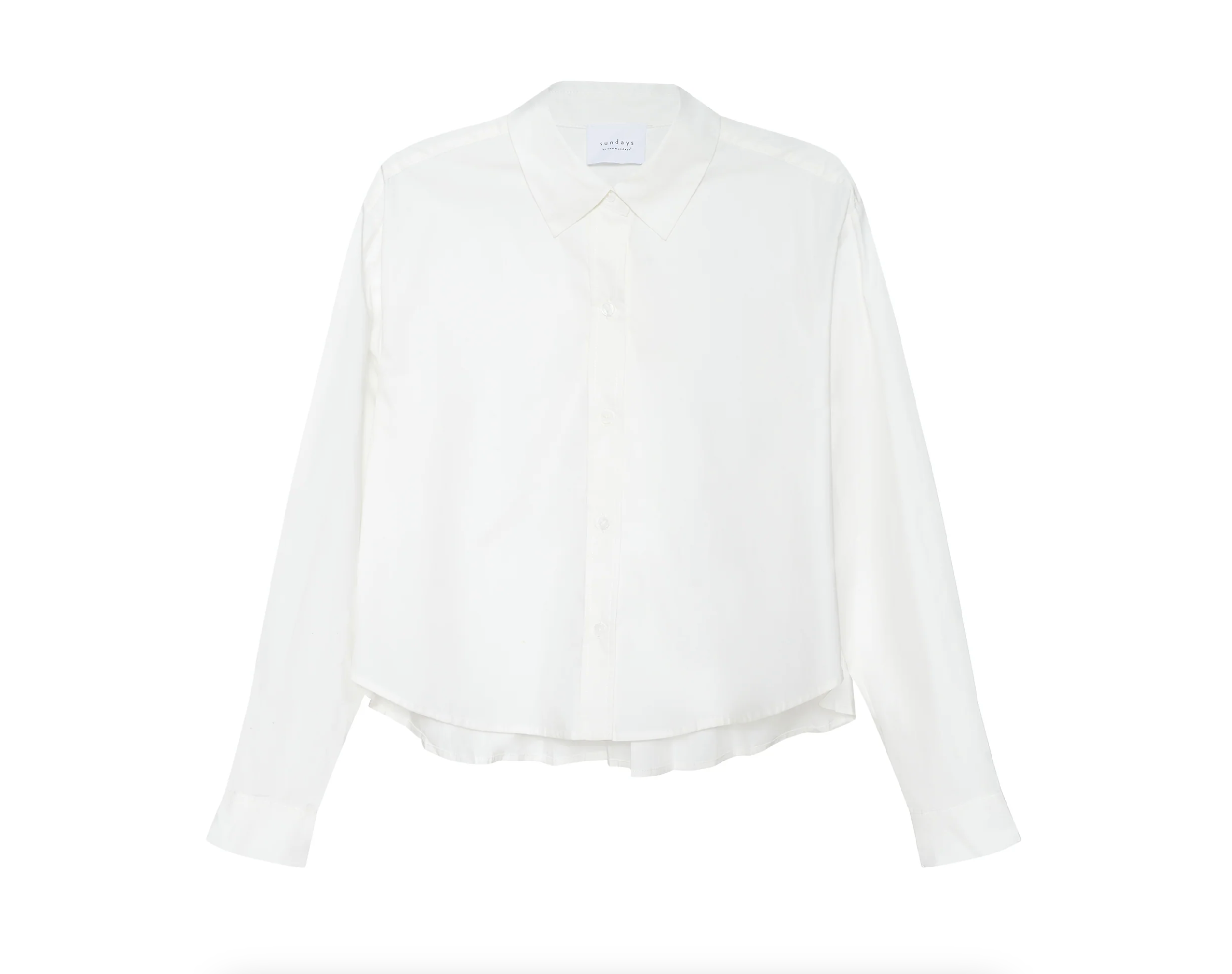 The Freja reimagines the classic button-up with playful design details in true Sundays style. Cut in our signature poplin, it features a traditional button front, rounded hem, and soft back pleats that add movement and ease. Fit is slightly oversized for a cool easy feel.