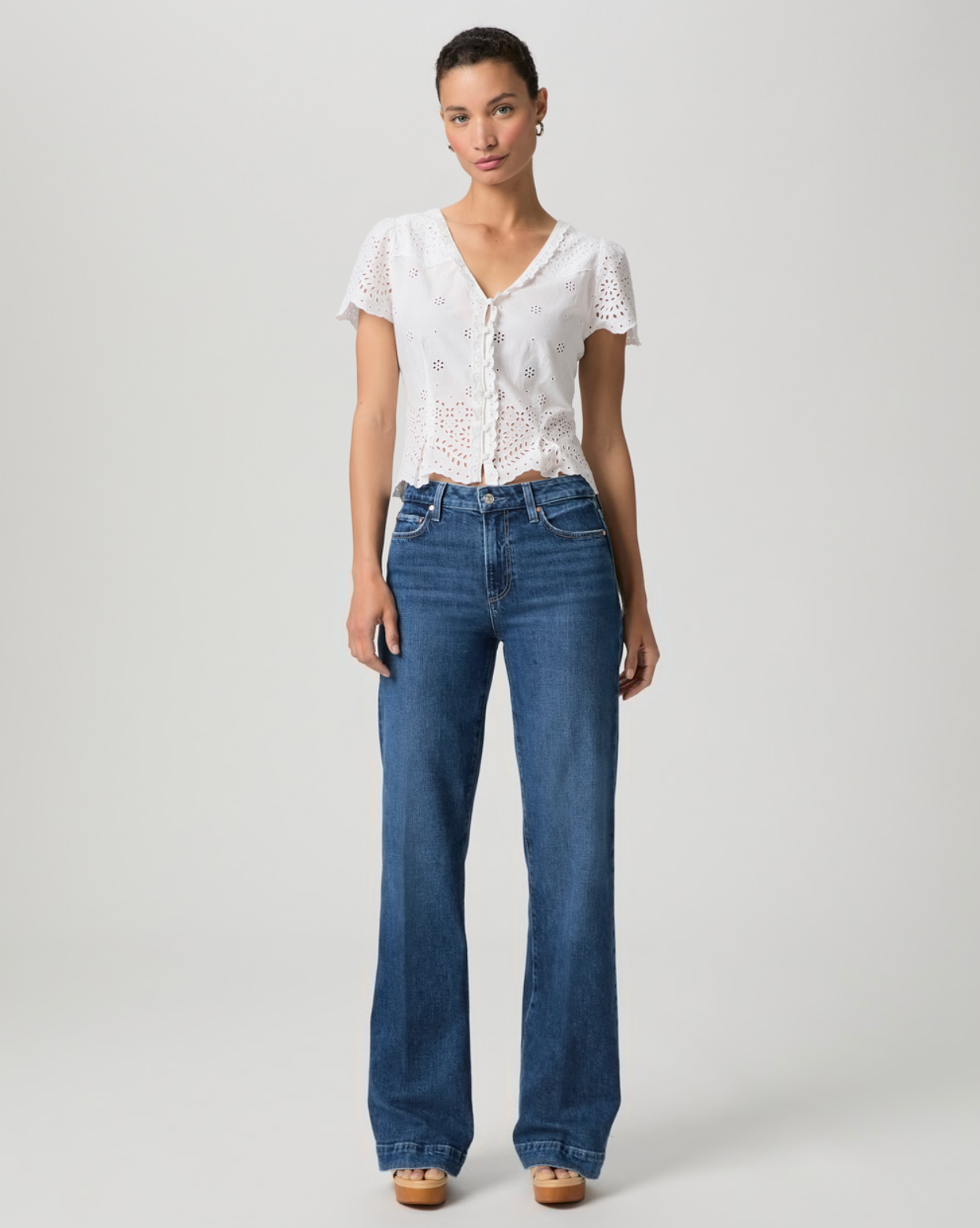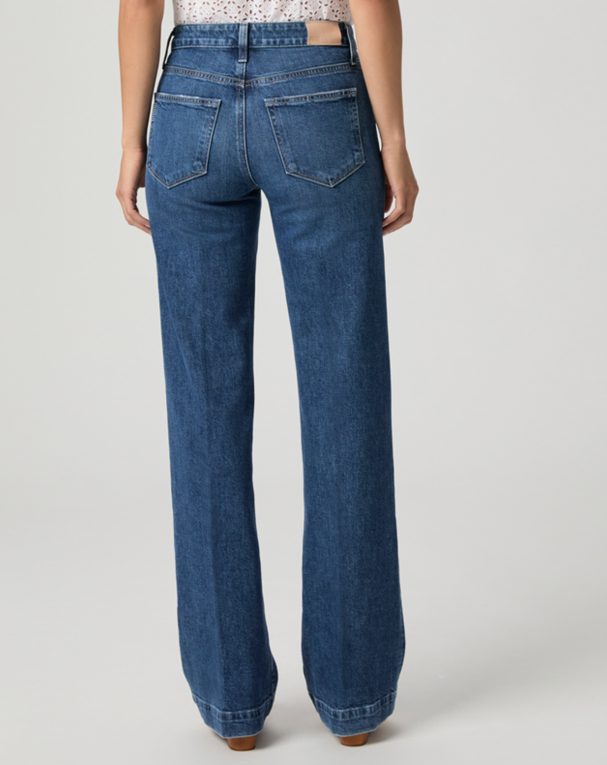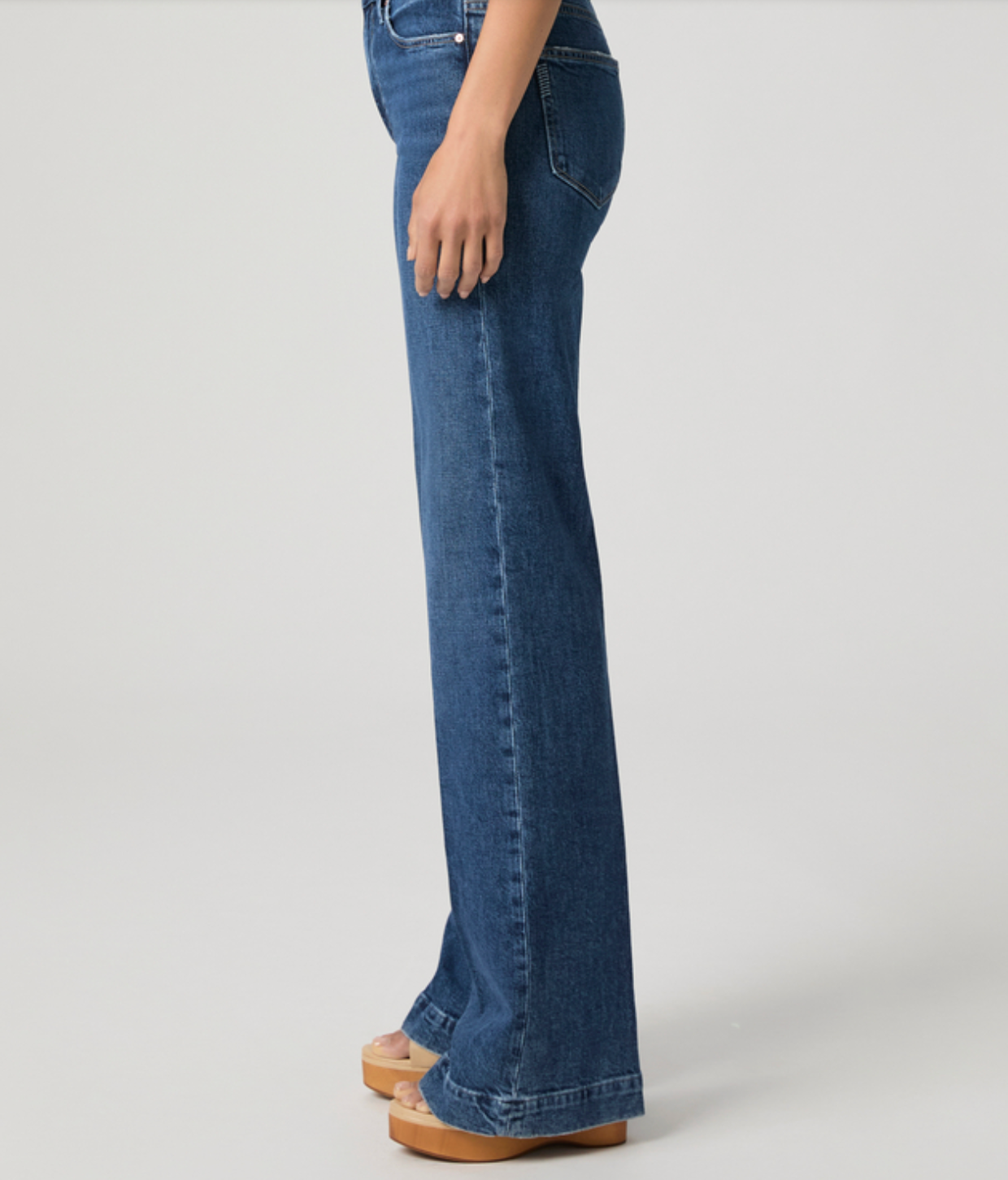 This 90s-inspired sleek wide leg is designed with a high-rise and a flattering bow leg silhouette. This style is cut from PAIGE VINTAGE denim in a clean and classic dark vintage-inspired wash. PAIGE VINTAGE takes all the work out of breaking in your favorite pair of vintage jeans. We've combined the comfort of stretch with everything you love about authentic vintage denim to create super soft jeans that feel perfectly lived-in from the very first wear.