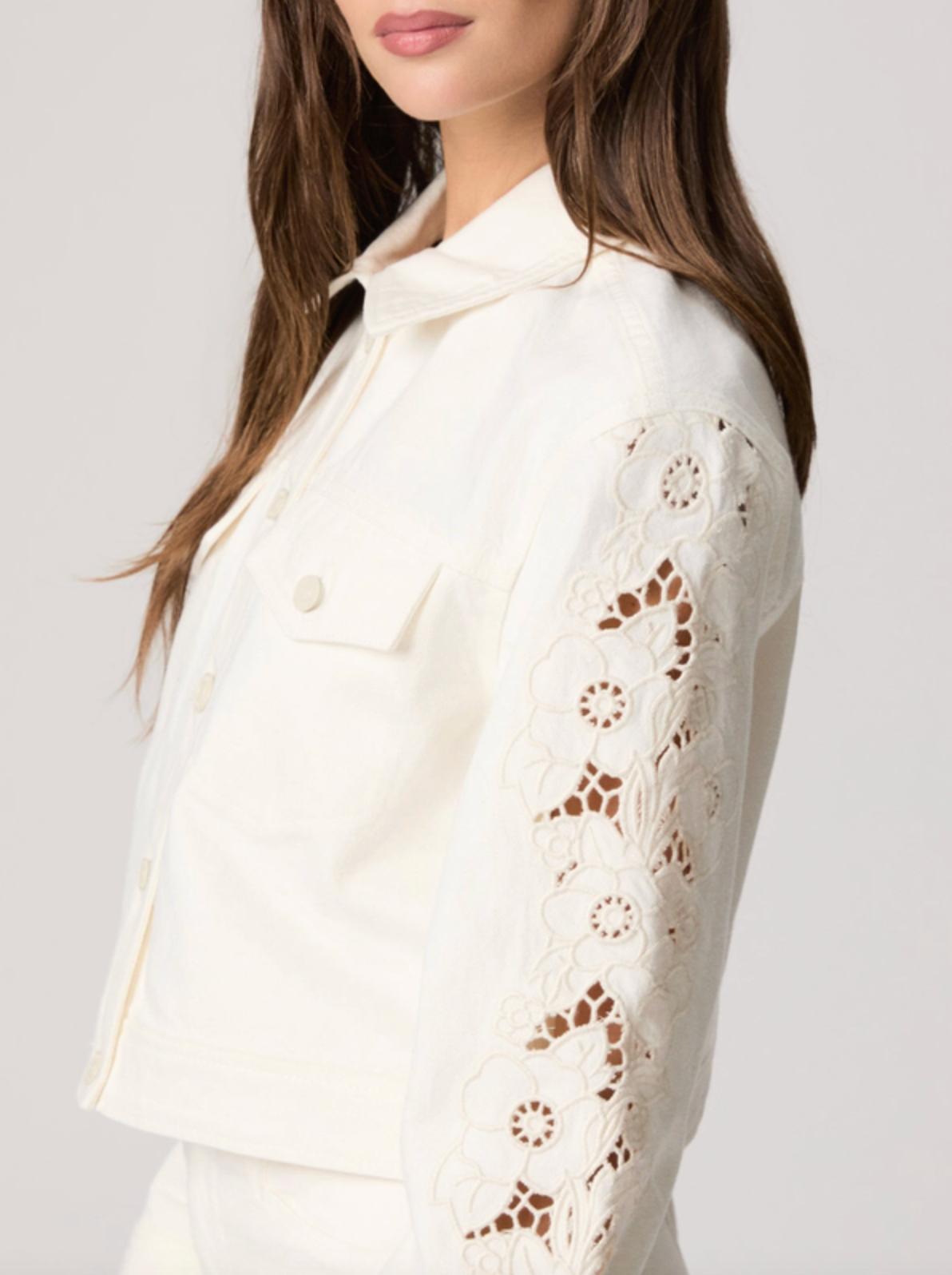 Michele Jacket w/ Embroidered Panels - Tonal Ecru