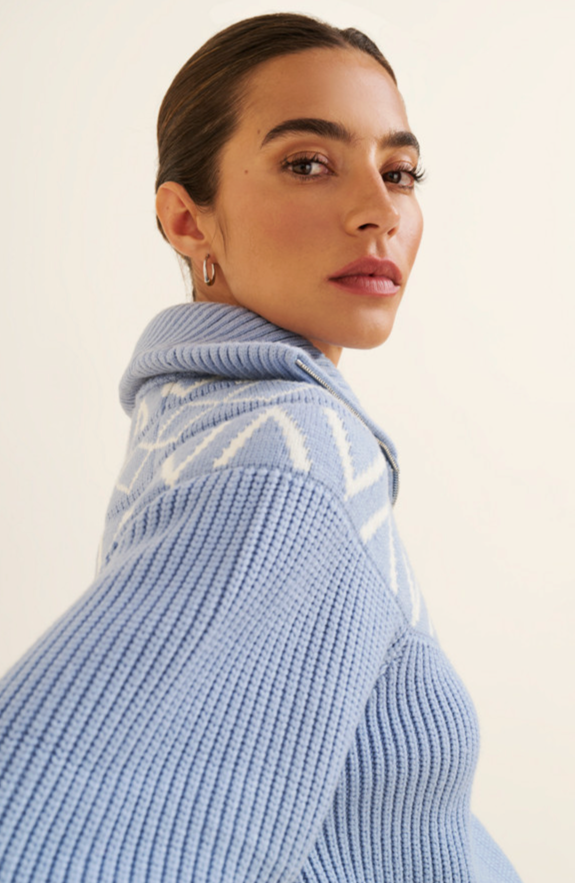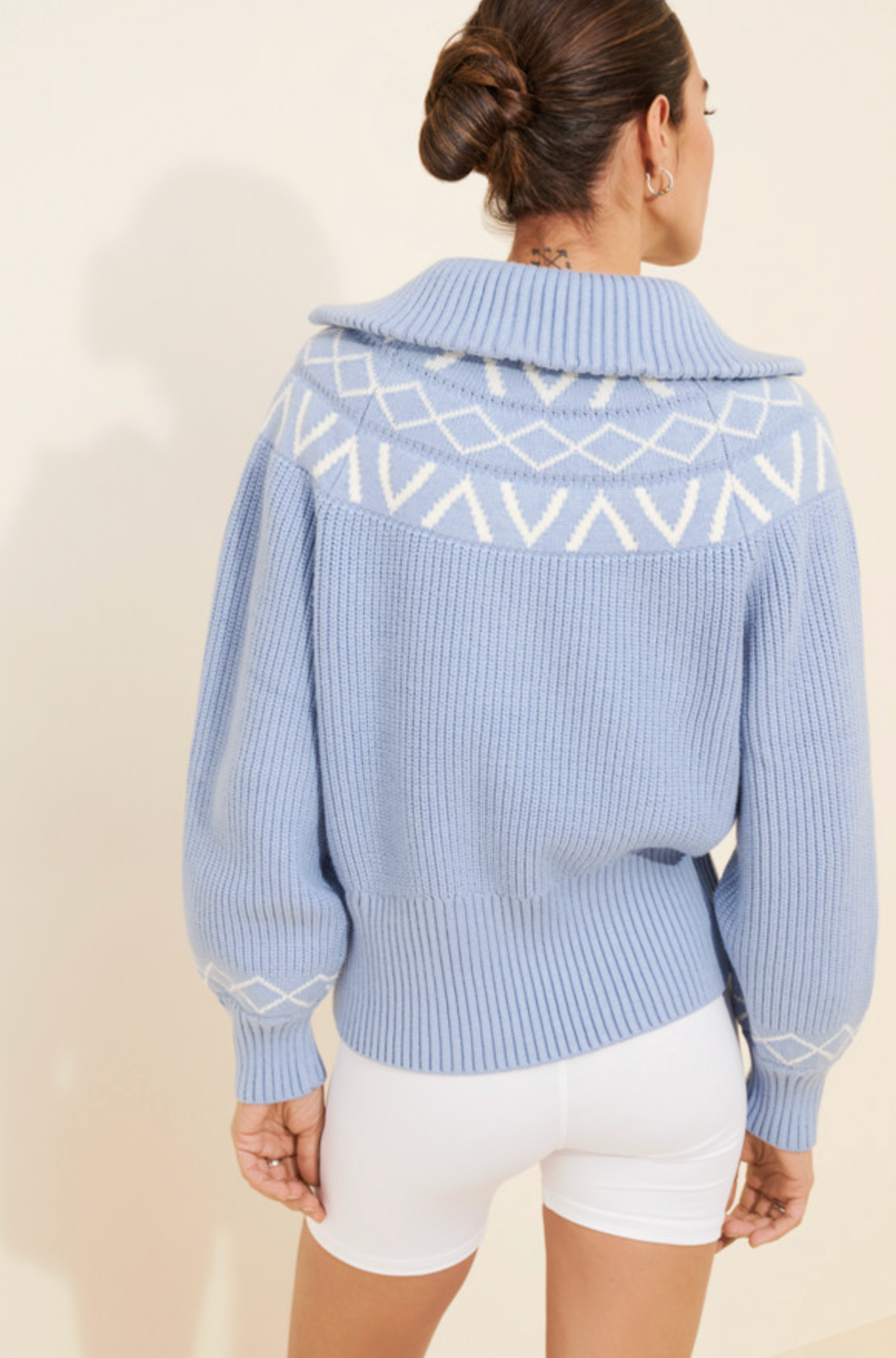 Sigrid Fairisle Half Zip Knit - Glacier Blue