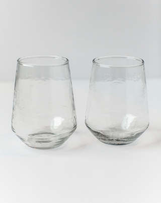 Handblown Hammered Glass Water Tumbler - Pair of 2 - Clear