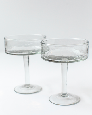 Handblown Hammered Coupe Cocktail Glass - Pair of 2 - Clear