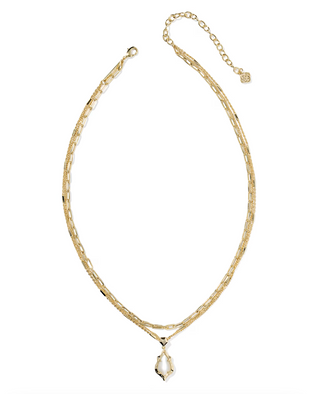 Adriana Scallop Frame Multi Strand Necklace - Gold - Natural Mother of Pearl