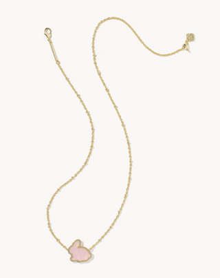 Bunny Short Pendant Necklace - Gold Matte Blush Pink Dichroic Glass
