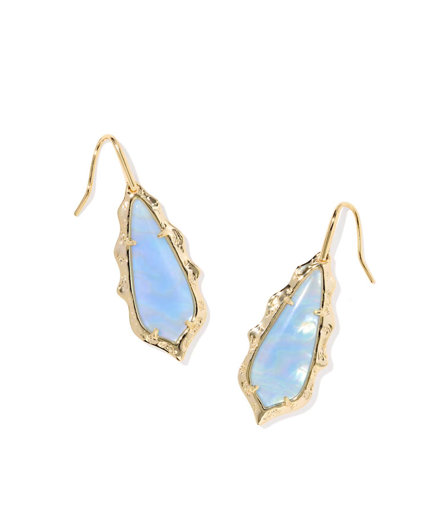 Adriana Scallop Frame Drop Earrings - Gold Sky Blue Iridescent Abalone