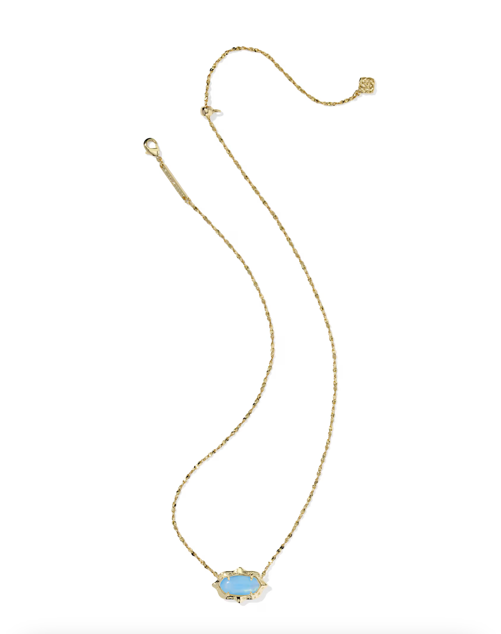 Elisa Scallop Frame Short Pendant Necklace - Gold - Sky Blue Iridescent Abalone