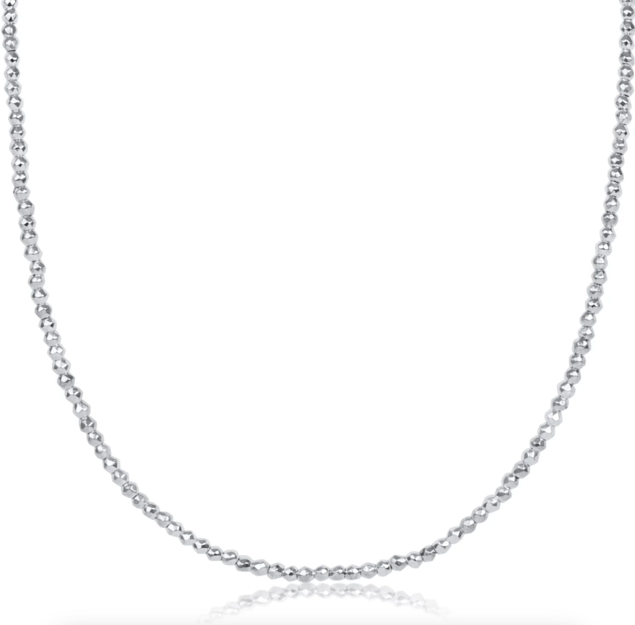 17" Choker Bright Silver Faceted Hematite 2mm Bead