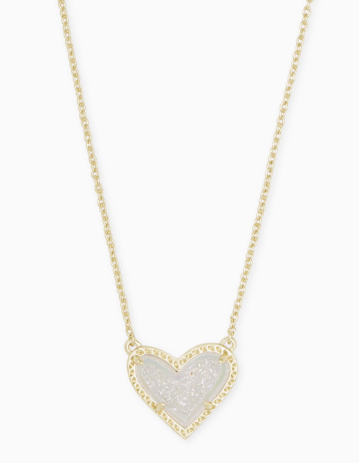 Ari Heart Short Pendant Necklace - Gold Iridescent Drusy
