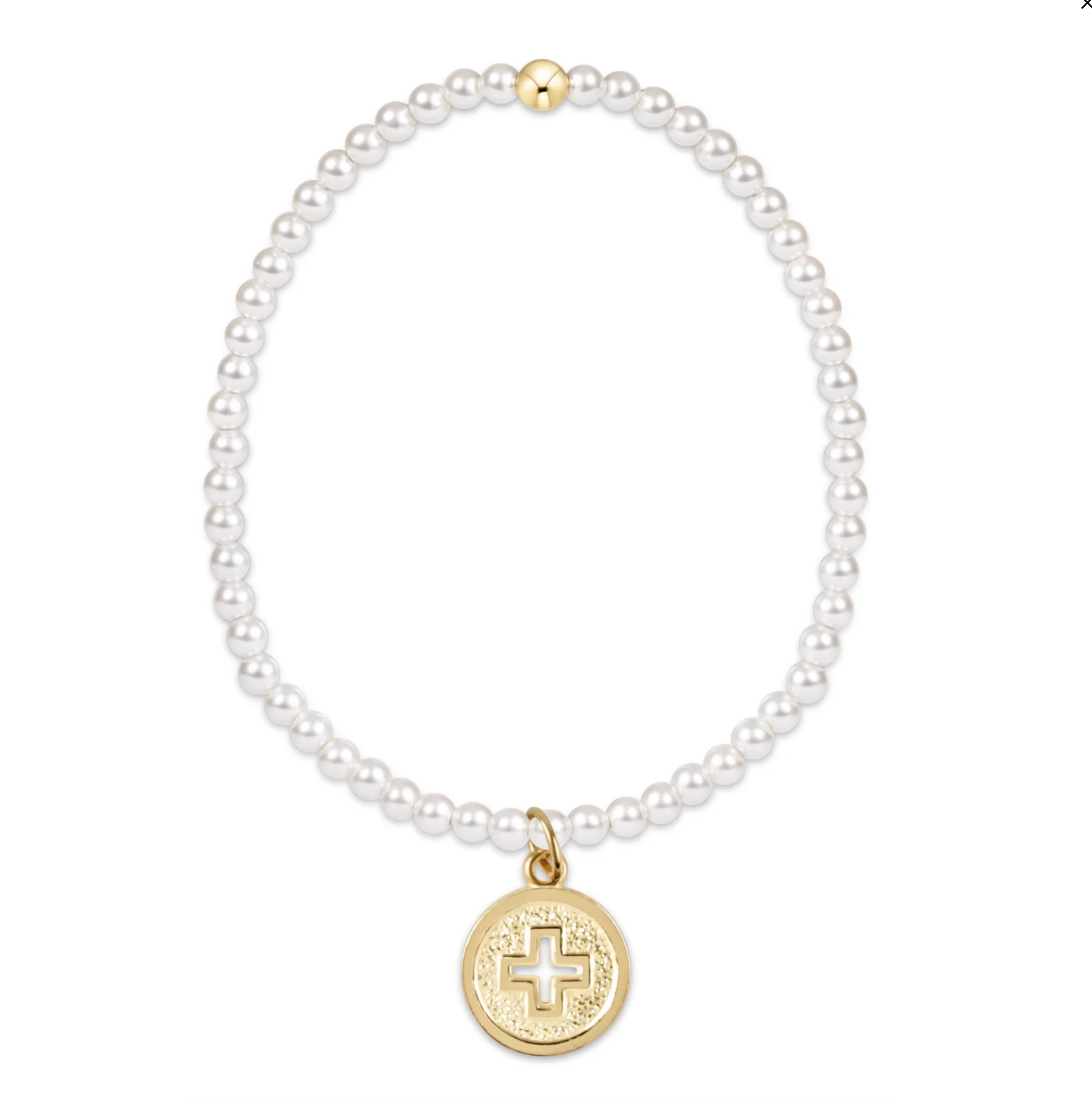 Classic Pearl 3mm Bead Bracelet - Signature Cross Gold Disc