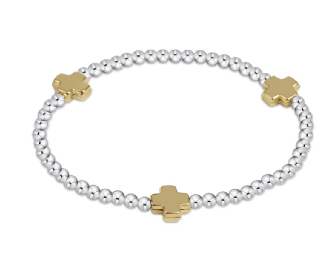 Signature Cross Sterling Mixed Metal Pattern 3MM Bead Bracelet - Gold