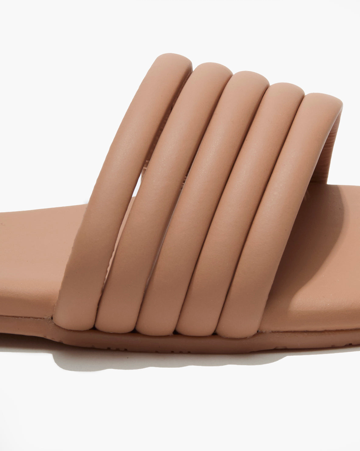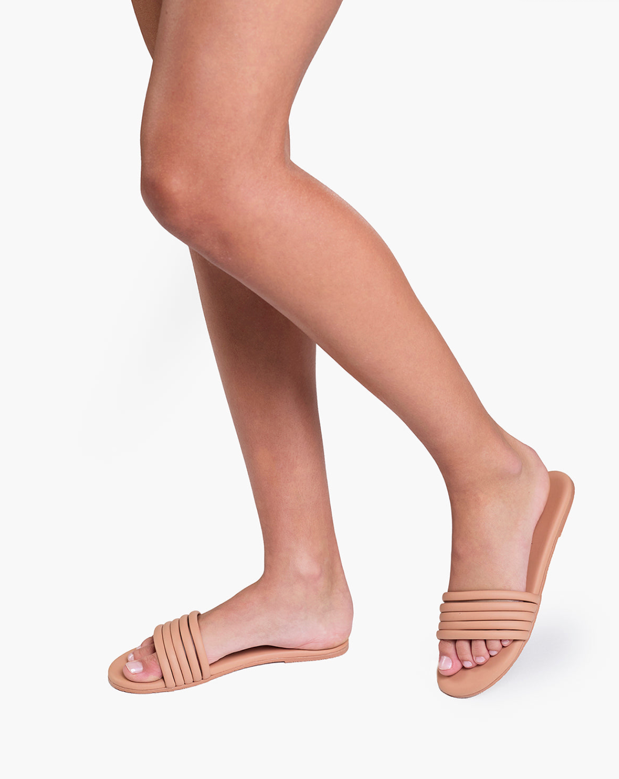 Five perfectly placed, parallel straps form a single strap that sits at the base of the toes. Skip the break-in period; these were handcrafted from soft Brazilian leather with a cushioned insole and rubber outsole.