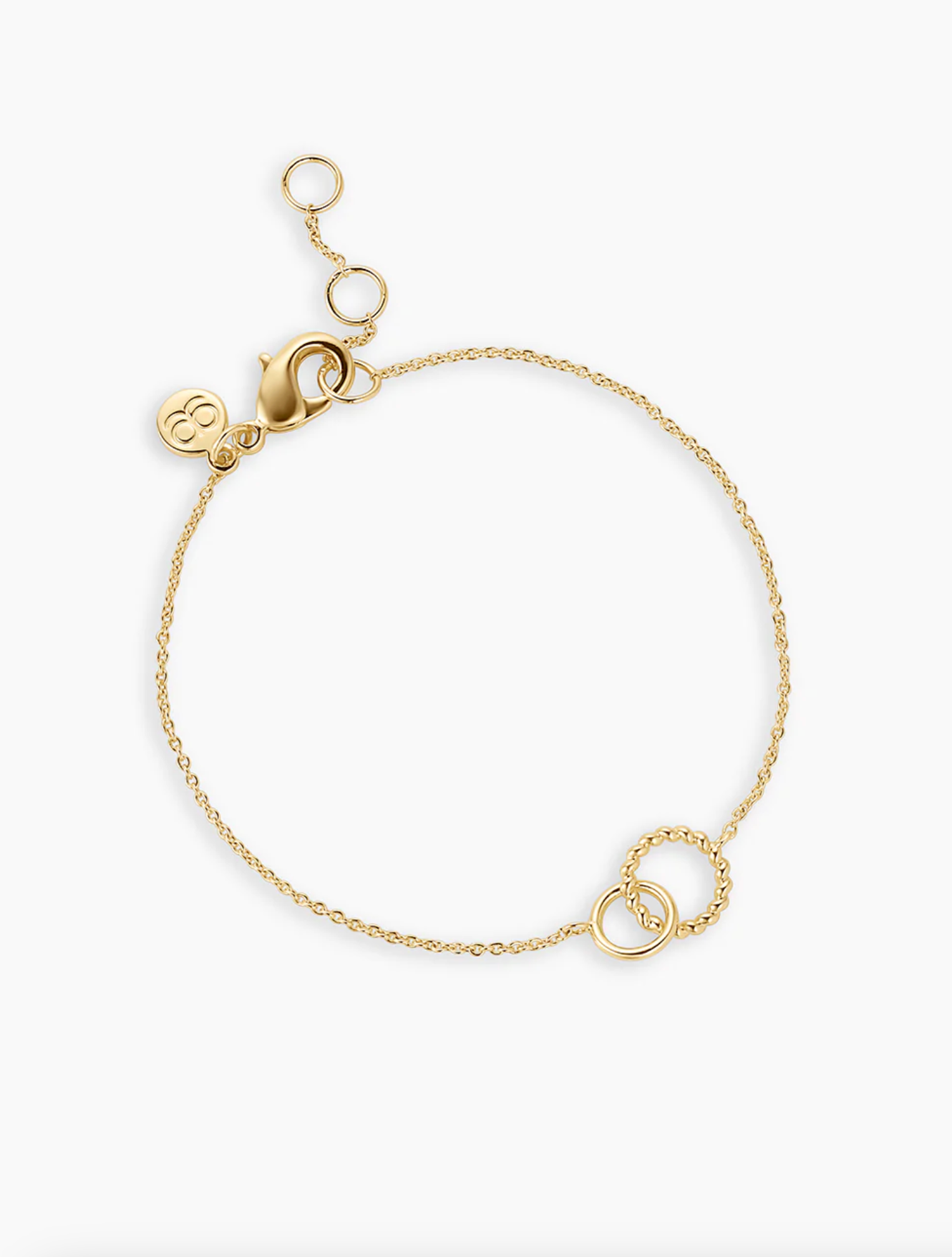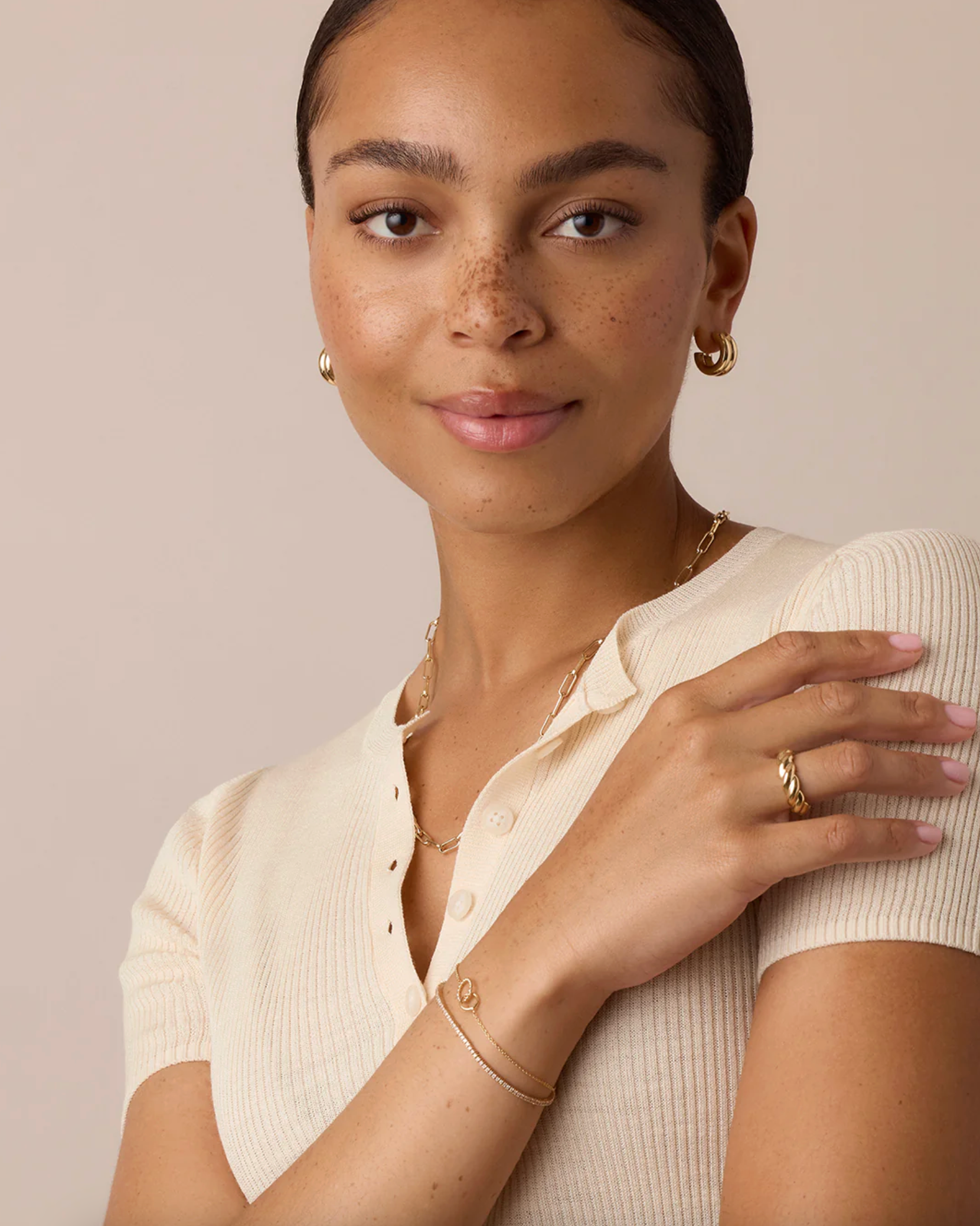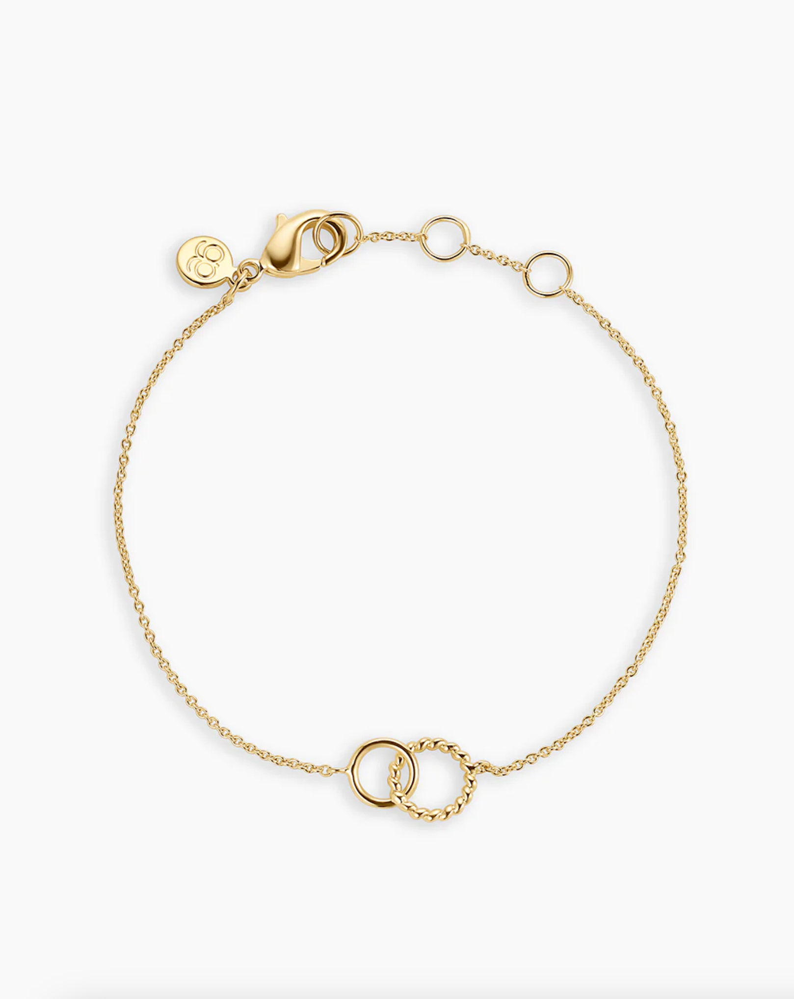 Crafted with luxe gold plating, this Crew Charm Bracelet is an elegant addition to any look. Featuring interlocking rings, this bracelet is dainty yet adjustable for any wrist size. A timeless design, this bracelet is the perfect accessory for any occasion.