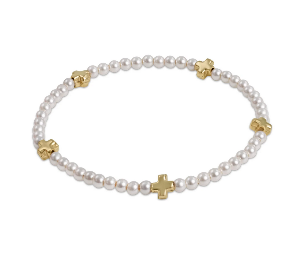 Signature Cross Small 3mm Pearl Bracelet - Gold