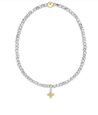 bright silver faceted hematite 2mm bead bracelet - inspire small gold charm