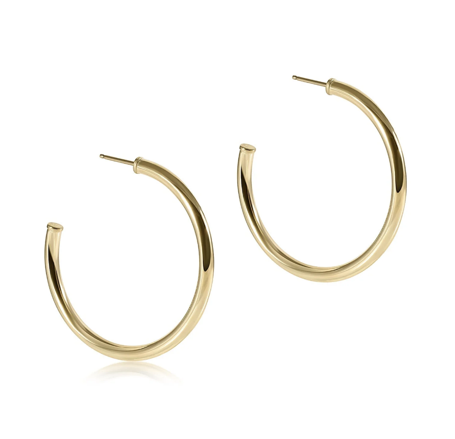 Round Gold 1.5" Post Hoop - 3mm Smooth Gold