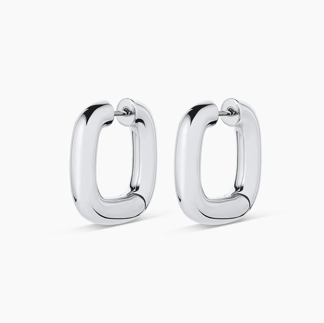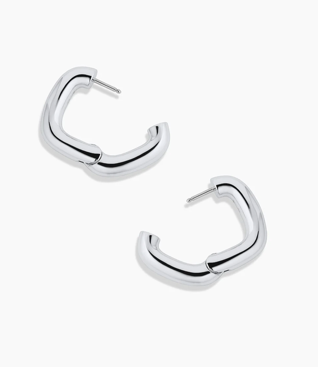 Elevate your style with these silver plated hoop earrings - their unique sculptural shape is sure to make a statement. Perfectly lightweight, these earrings are a great choice for day or night. Make them the focal point by keeping your earring stack simple.