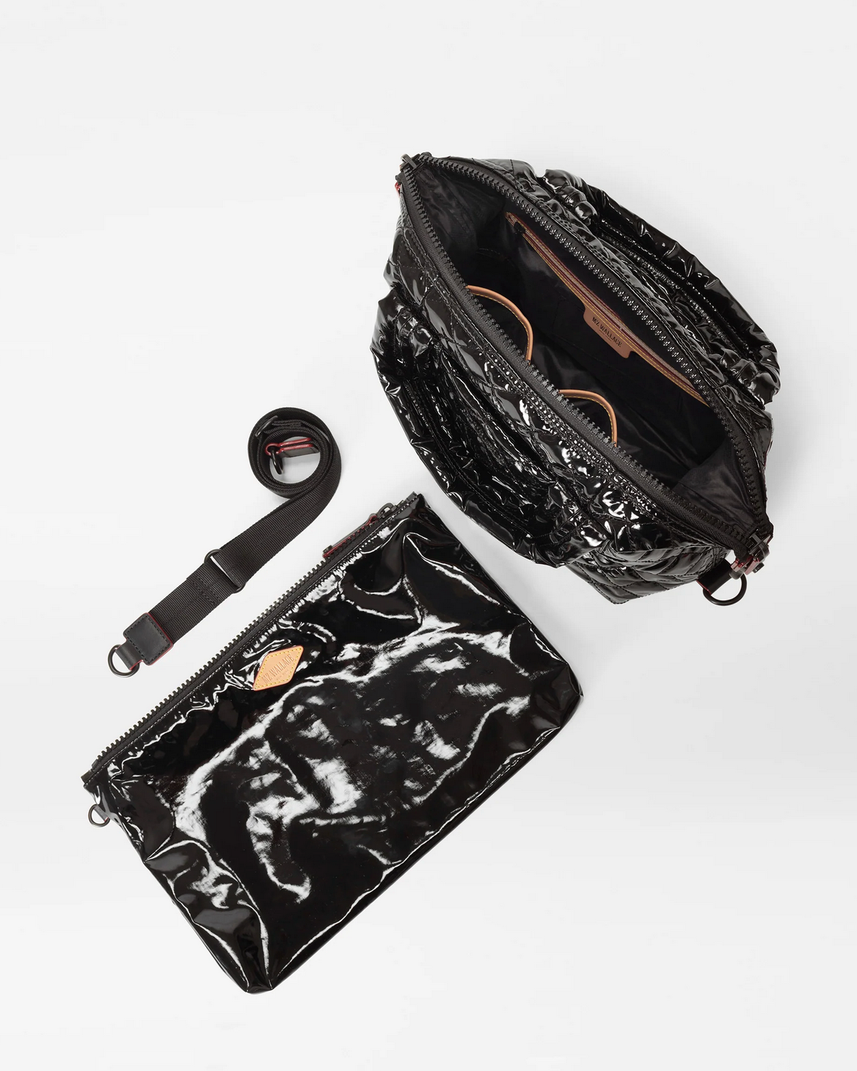 - Detachable, adjustable nylon crossbody strap