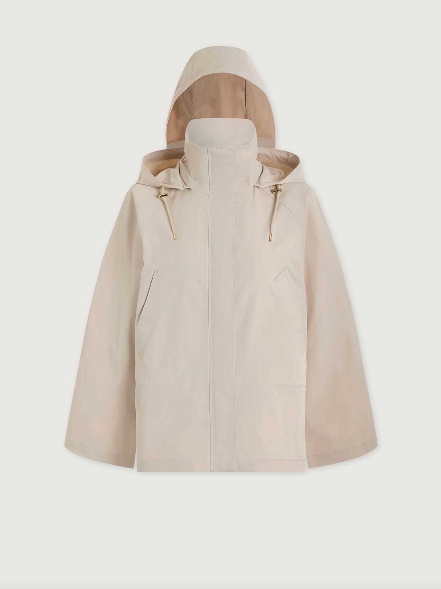 Cut to a relaxed fit with room to layer, the Jeanie jacket has a storm flap, durable water repellent finish, and a detachable snap off hood. The low waist cinch detail and toggle fastening nips in the silhouette and adds interest.