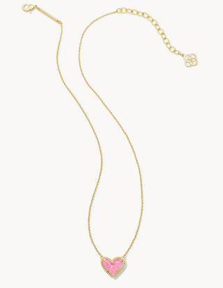 Ari Heart Short Pendant Necklace - Gold Pink Iridescent Glitter Glass