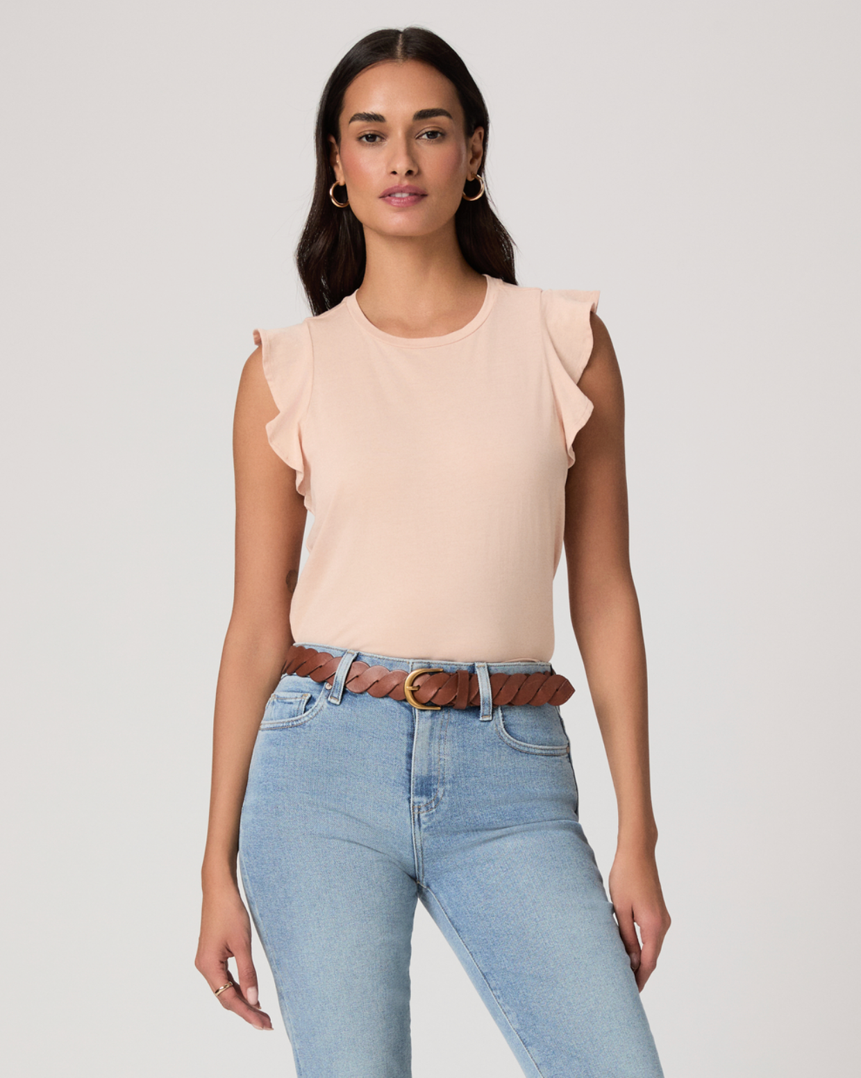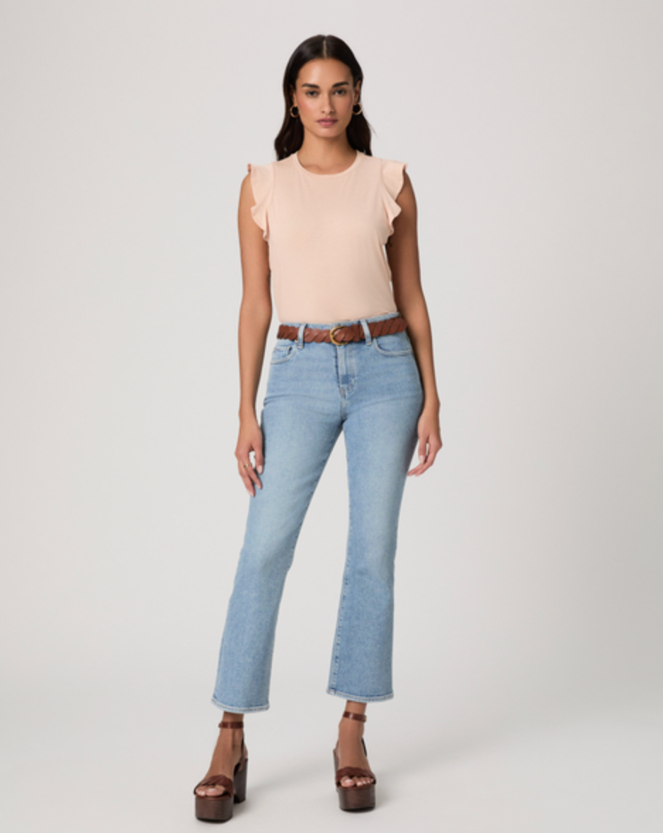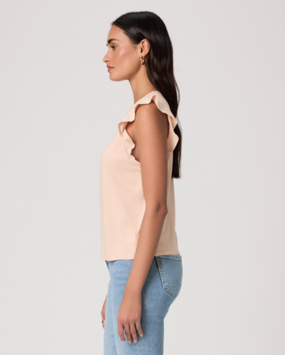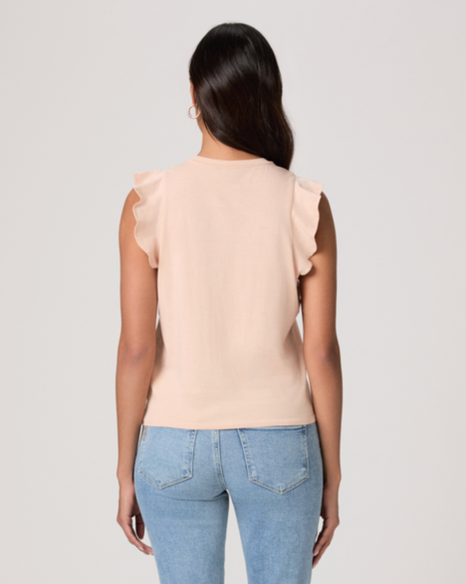 The Alaria Top is crafted from 100% vintage cotton jersey for a soft,  lived-in feel. This feminine take on a classic tank features delicate  flutter detailing around the armholes for subtle movement and charm. In  light pink, it’s the perfect lightweight piece to tuck into denim or  short for effortless wear.