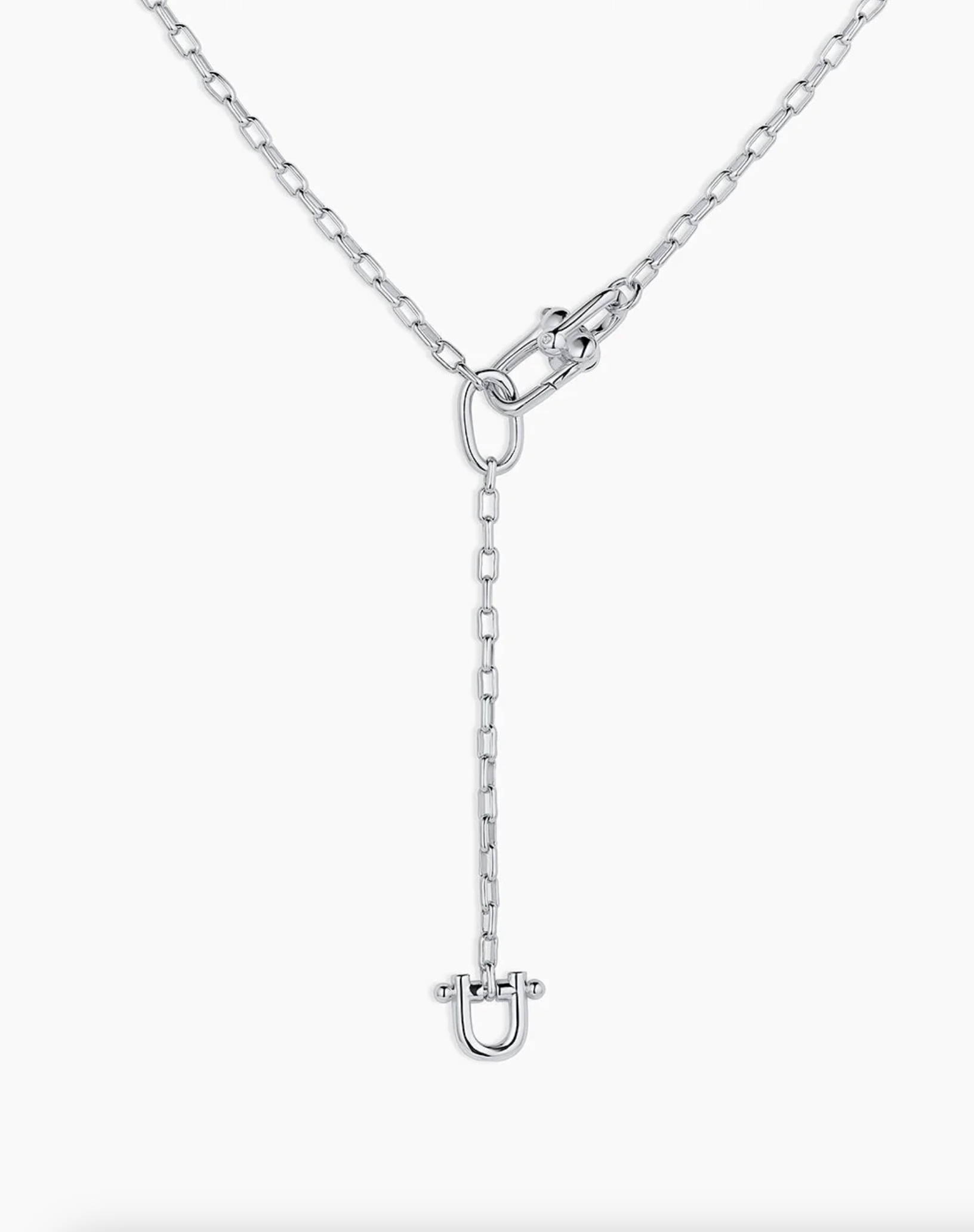 This dainty silver-plated lariat necklace looks just as amazing solo as it does stacked with your favorite chains, switching effortlessly from classic necklace to something a little more rebellious. Lightweight, polished, and unapologetically versatile—this necklace works no matter what way you wear it.
