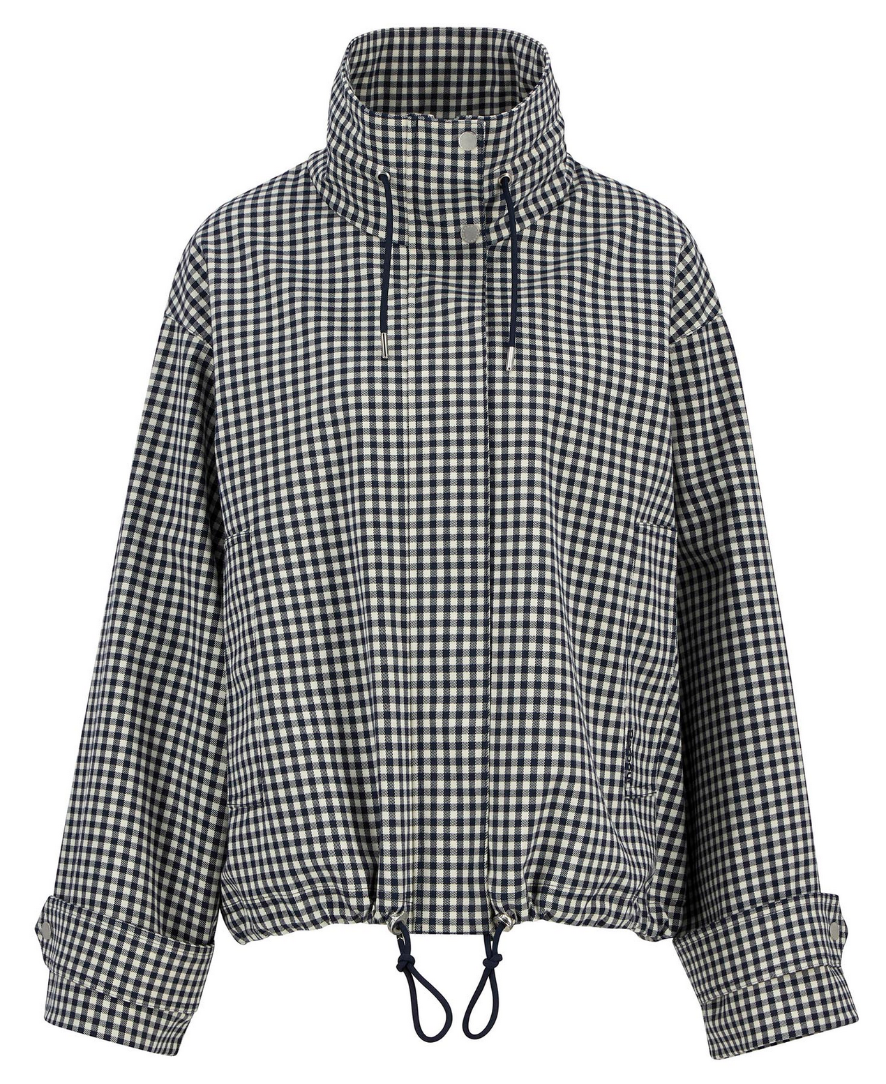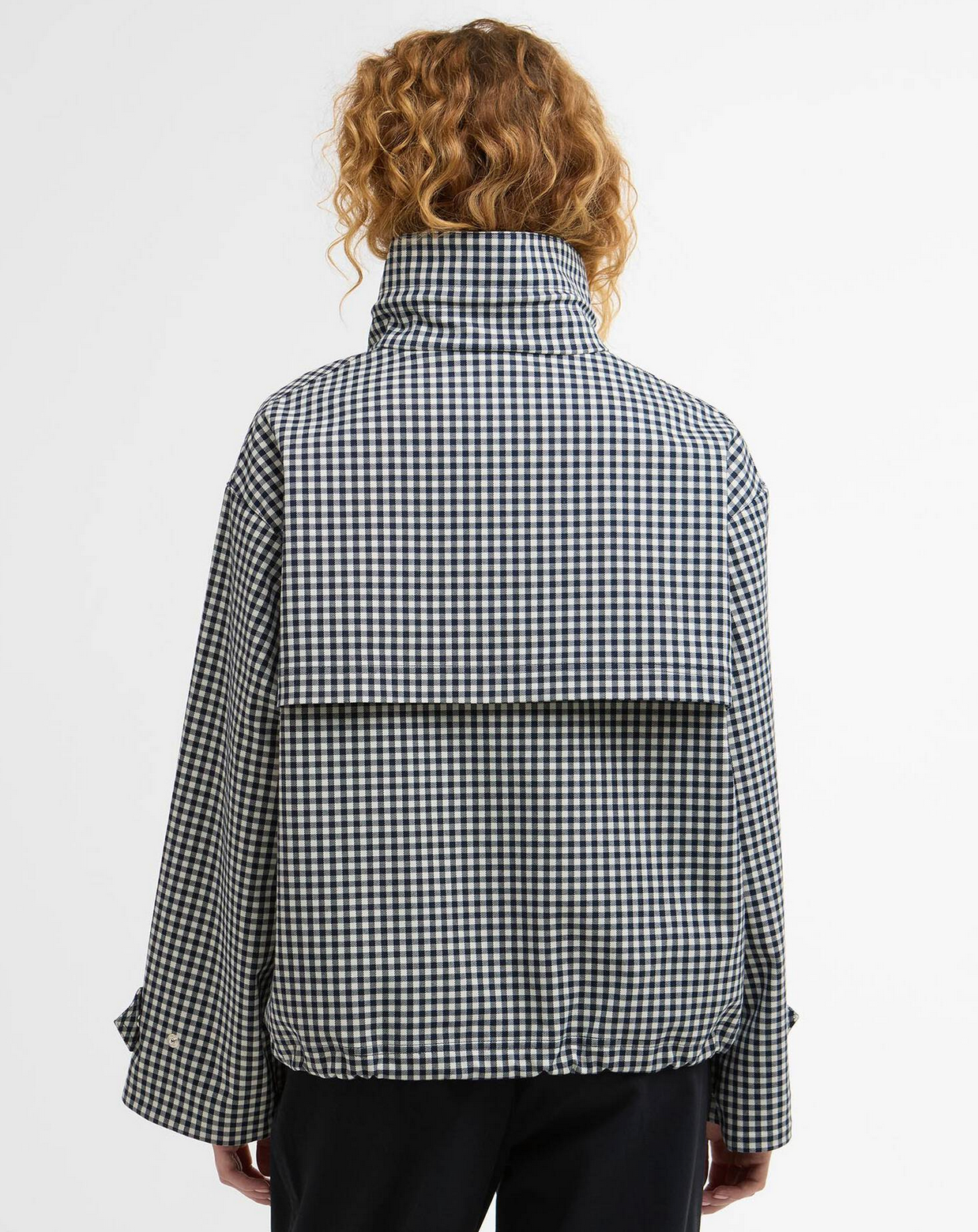 The Barbour Bronwyn Gingham Showerproof Jacket is a stylish, short-layered essential for unpredictable weather. Crafted with an oversized funnel neck and adjustable drawcords at the neck and hem, it offers a customisable fit and extra protection. A zip centre-front fastening sits behind a studded placket, complemented by practical front welt pockets. Lightweight yet durable, this jacket combines contemporary design with Barbour’s signature heritage detailing for versatile, all-season wear.