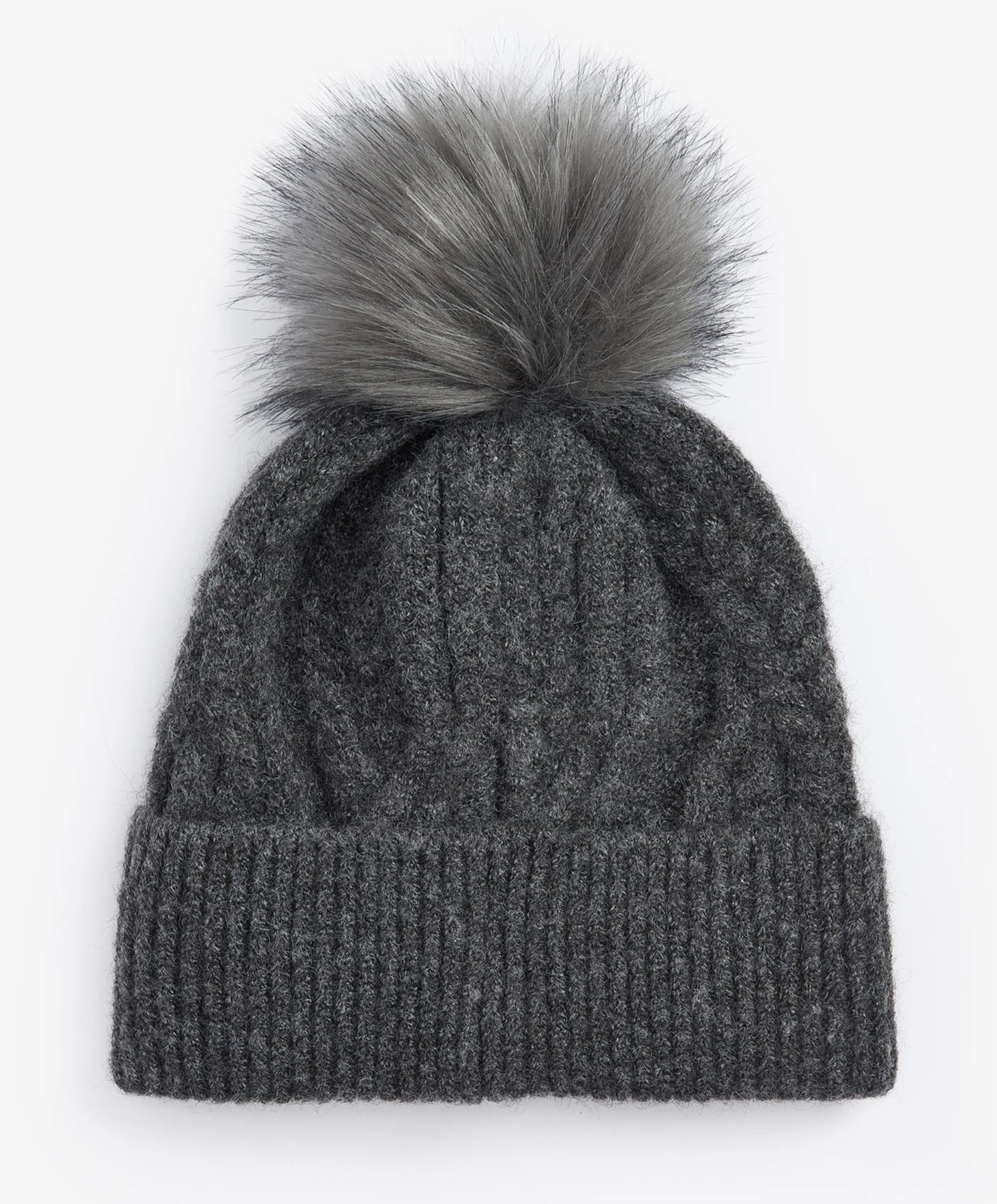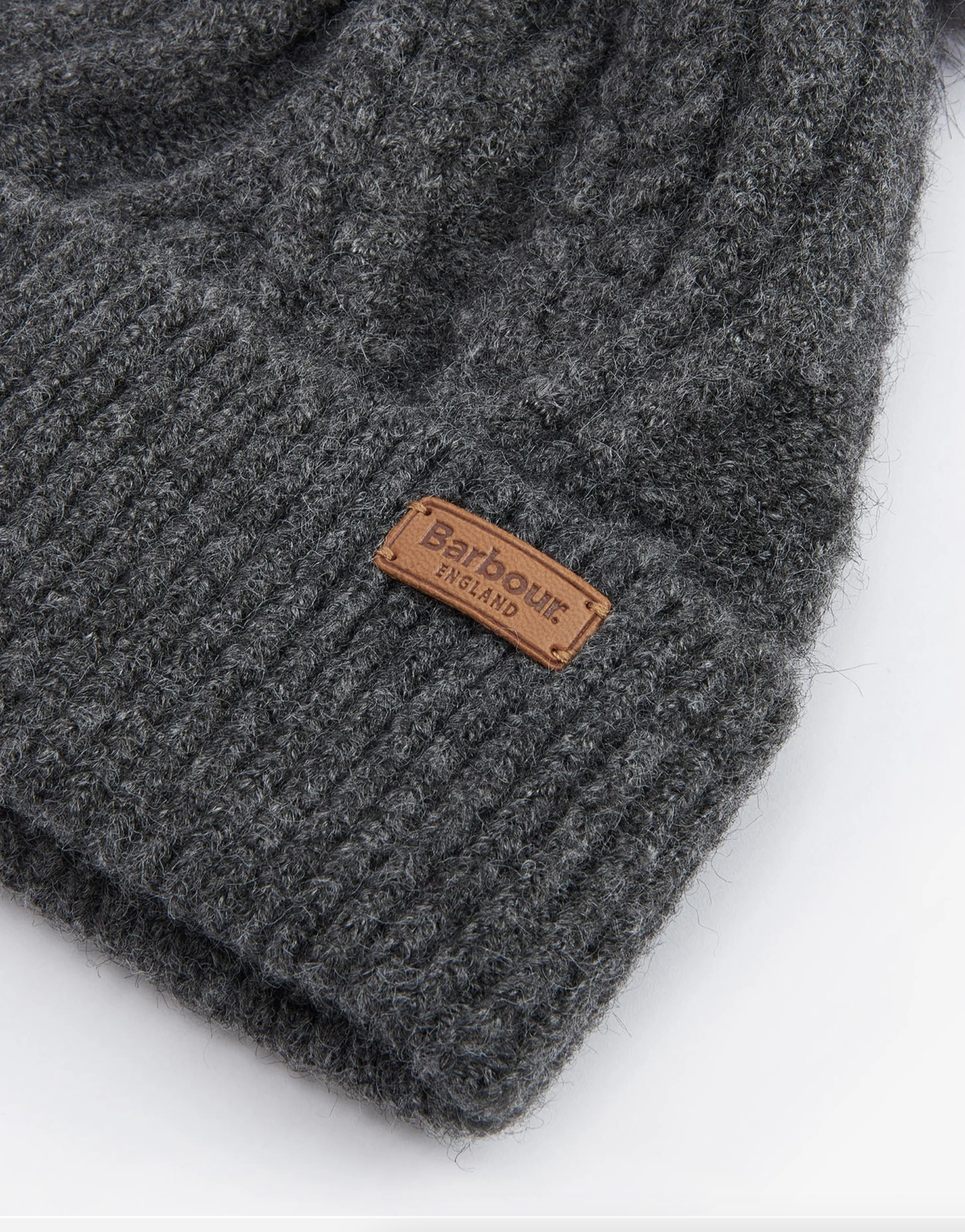 Introducing the Barbour Elsdon Beanie with a stylish cable knit and a contrasting ribbed turnup hem. Featuring a traditional faux-fur pom to the top, this must-have accessory is finished with a branded tab to the front for a signature look