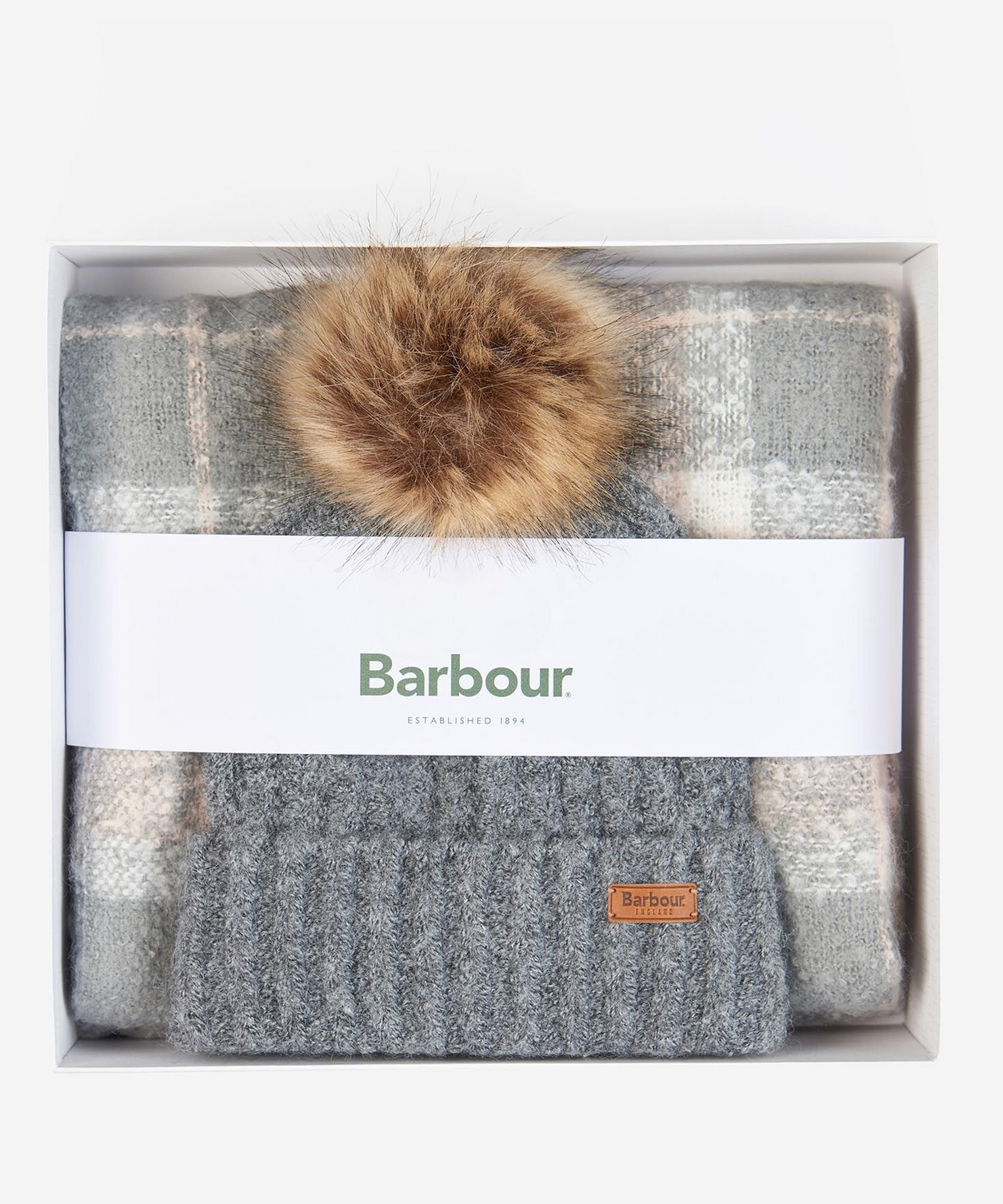 Barbour Saltburn Beanie & Tartan Scarf Gift Set - Grey Rose