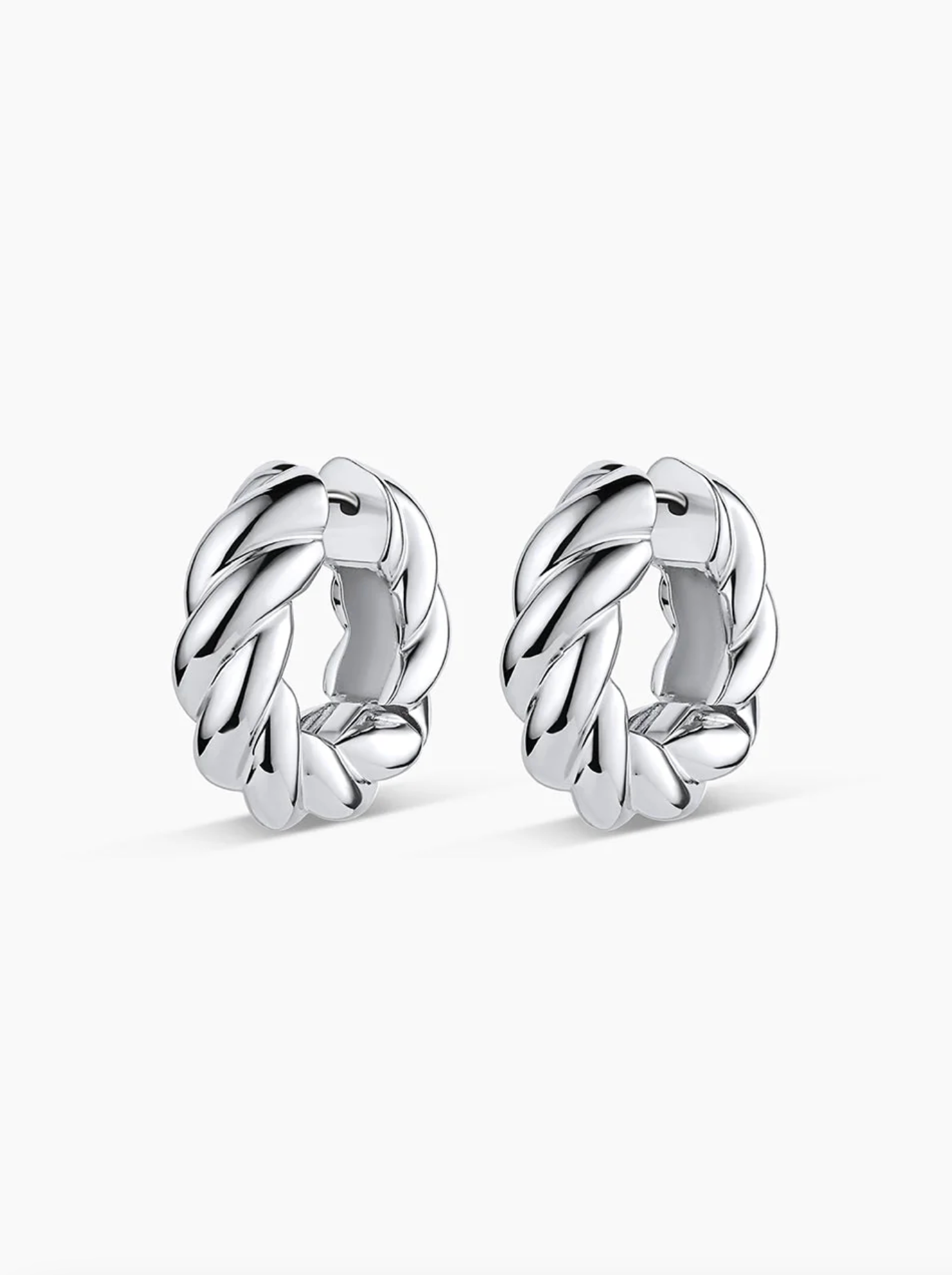 Elevate your style with the Crew Helium Hoops. Featuring a unique twist texture and helium design, these silver plated statement earrings transition seamlessly from day to night. We love wearing ours alongside gold and diamond studs.