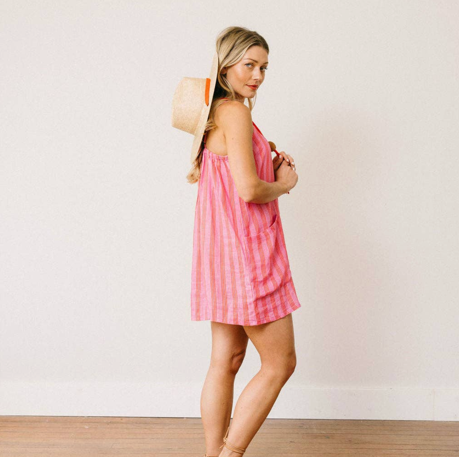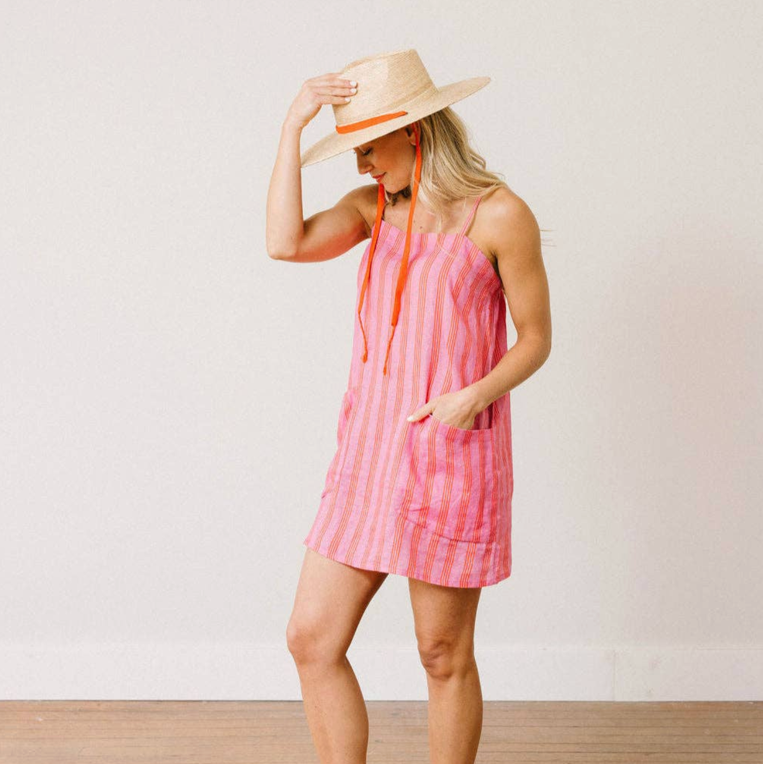 The Grotto Dress is back—this easy mini is a sunshine staple, complete with front patch pockets, adjustable straps, and a relaxed fit that keeps things cool and carefree. Throw it on over a swimsuit or style it with sandals for all-day wear. Size and Fit: XS: 00–0 S: 2–4 M: 6–8 L: 10–14 XL: 16–18 XXL: 20-22 Details: Lined linen Relaxed fit Adjustable straps Care: Hand wash cold and hang dry