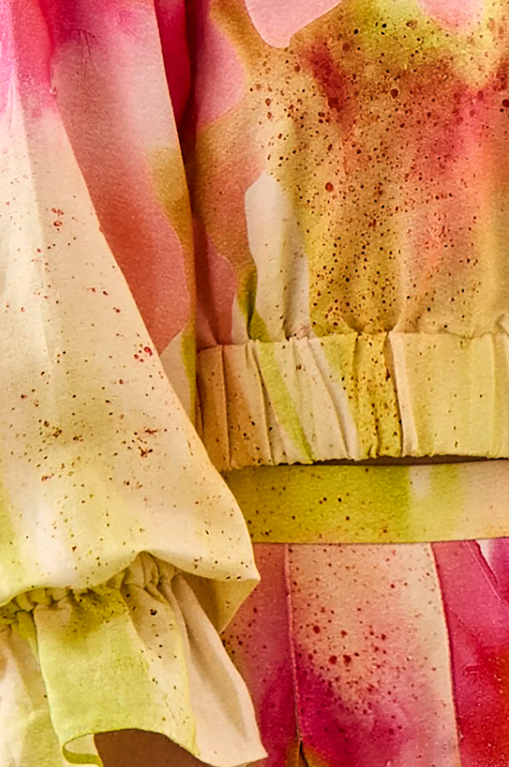 Elastic Waist Long Sleeve Tie-Dye Crop Top