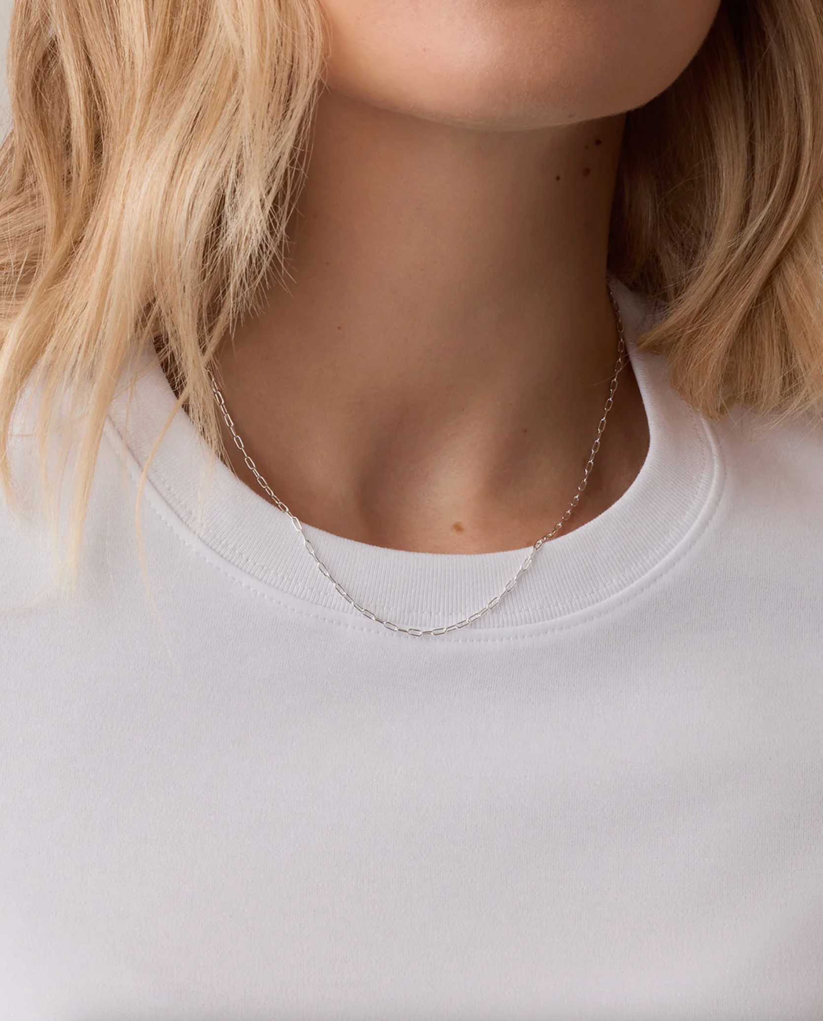 Sitting just below the collarbone, this dainty, silver plated chain necklace was made to layer. Whether you choose to add charms to your chain, wear it alone, or really go for it and pair it with three or four other necklaces, this chain's lightweight feel and great look will make it a go-to piece in your rotation. Charms not included.