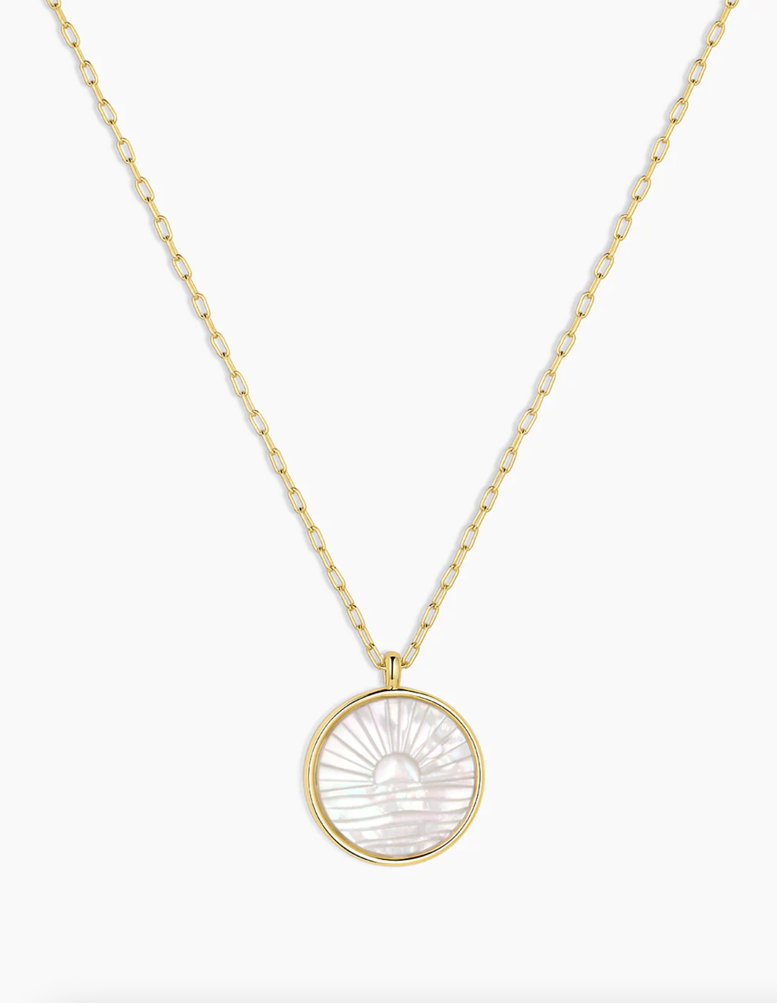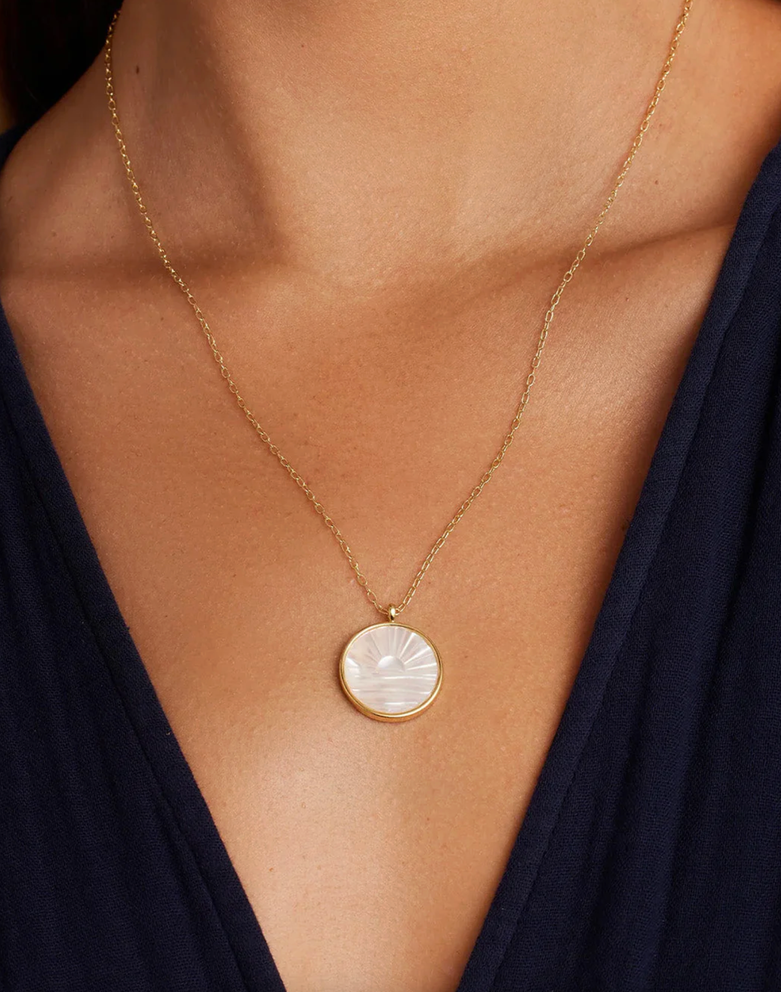 This necklace has a sophisticated design, with a gold-plated chain and mother of pearl pendant. Wear it solo as a statement piece, or layer it with other necklaces for a layered look. Style advice: position the pendant to rest just above the front of your neck for the perfect fit.