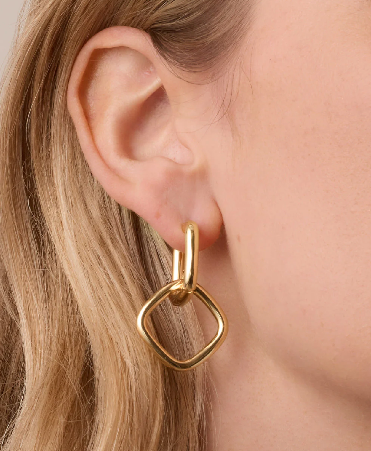 Elevate your style with these 18k gold plated drop earrings - their unique ssculptural shape is sure to make a statement. Perfectly lightweight, these earrings are a great choice for a special occasion. Make them the focal point by keeping your earring stack simple.