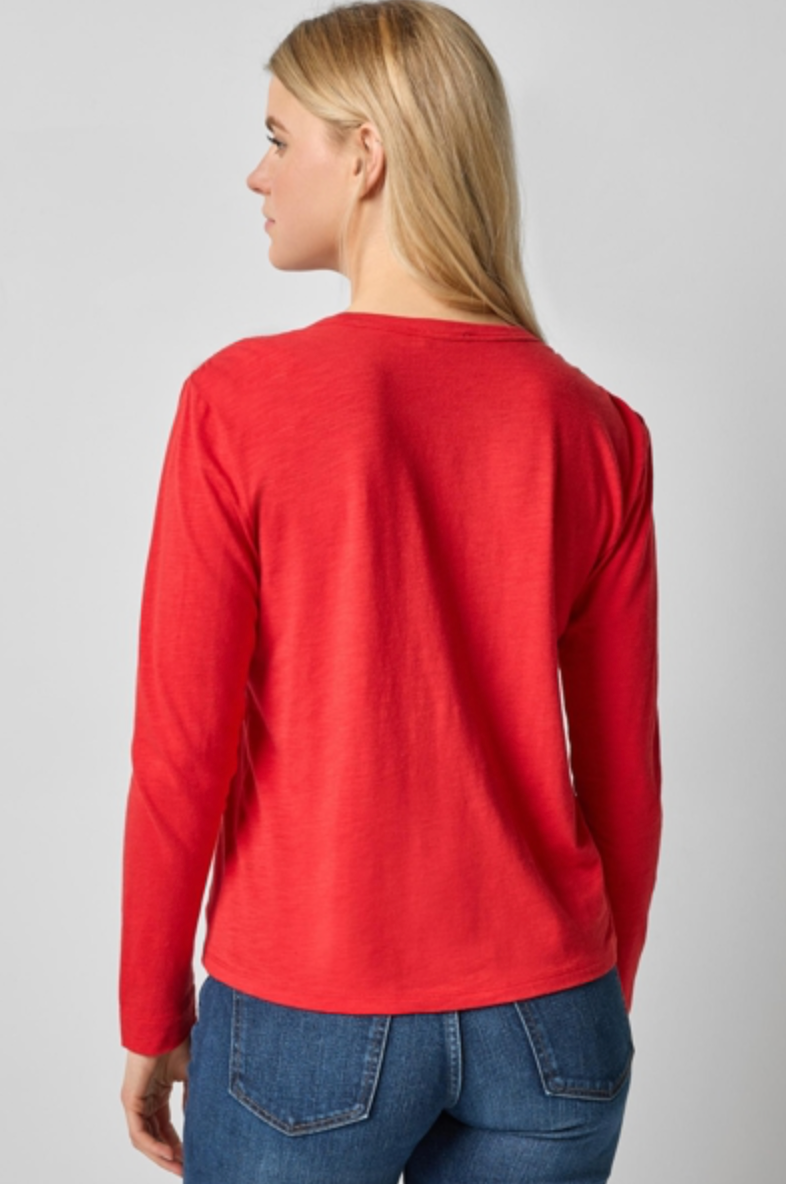 Shirred Shoulder Crewneck - Cherry