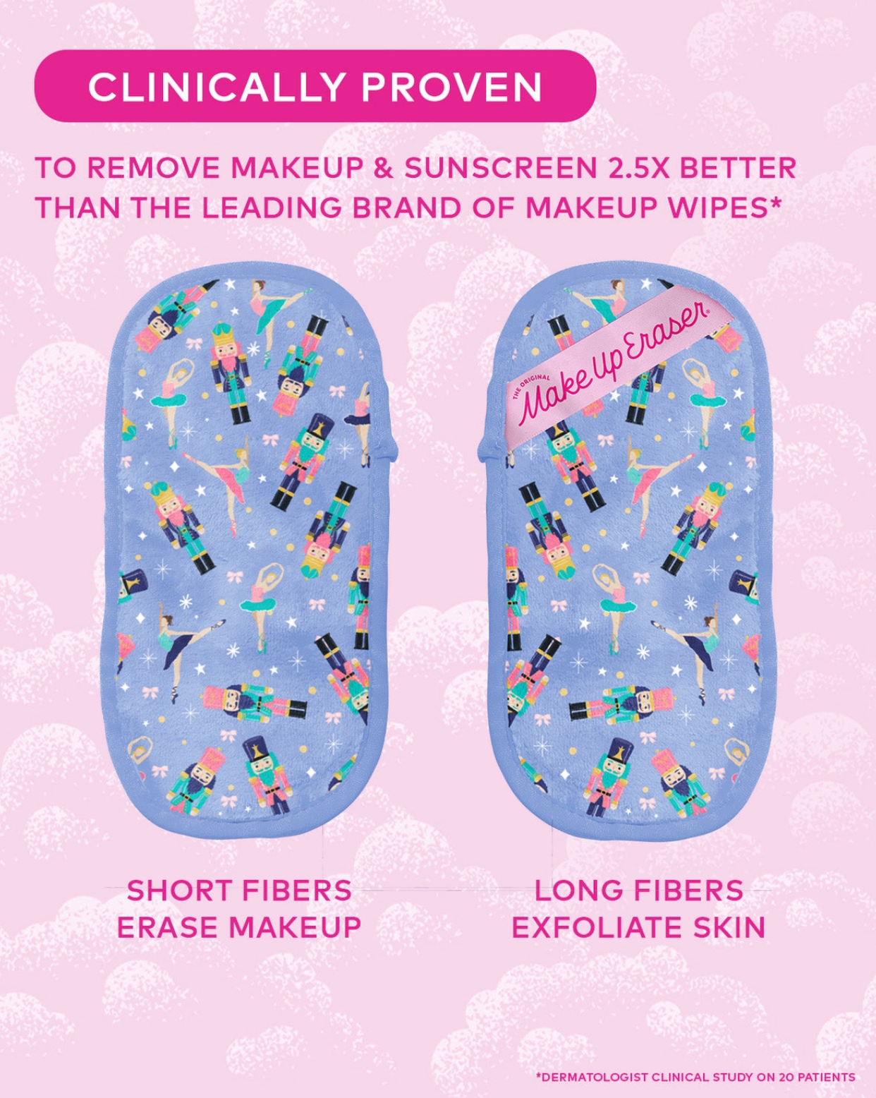 Includes 1 Mini PRO MakeUp Eraser, 8in x 4in. Remove makeup with JUST WATER™ including waterproof. Our patented, water-activated, cloud-soft fibers gently & easily remove all makeup & sunscreen from pores. 2 in 1 benefit: one side removes, one side exfoliates. ✓ Dermatologist Recommended for sensitive skin ✓ SmartErase™ Skin Tech ✓ Reusable & machine washable ✓ Great for all makeup The Original MakeUp Eraser® is non-irritating & non-drying, making it perfect for sensitive skin. It's safe for lash extensions, & entirely oil-free for a fresh, Skincare experience. A simple beauty solution Wet with warm water. The warmer, the wetter, the better! Use gentle circular motions to erase makeup with the short fiber side. Flip to long fiber side (side with tag) to exfoliate the skin. Machine wash & dry. Dryer sheet & fabric softener safe.