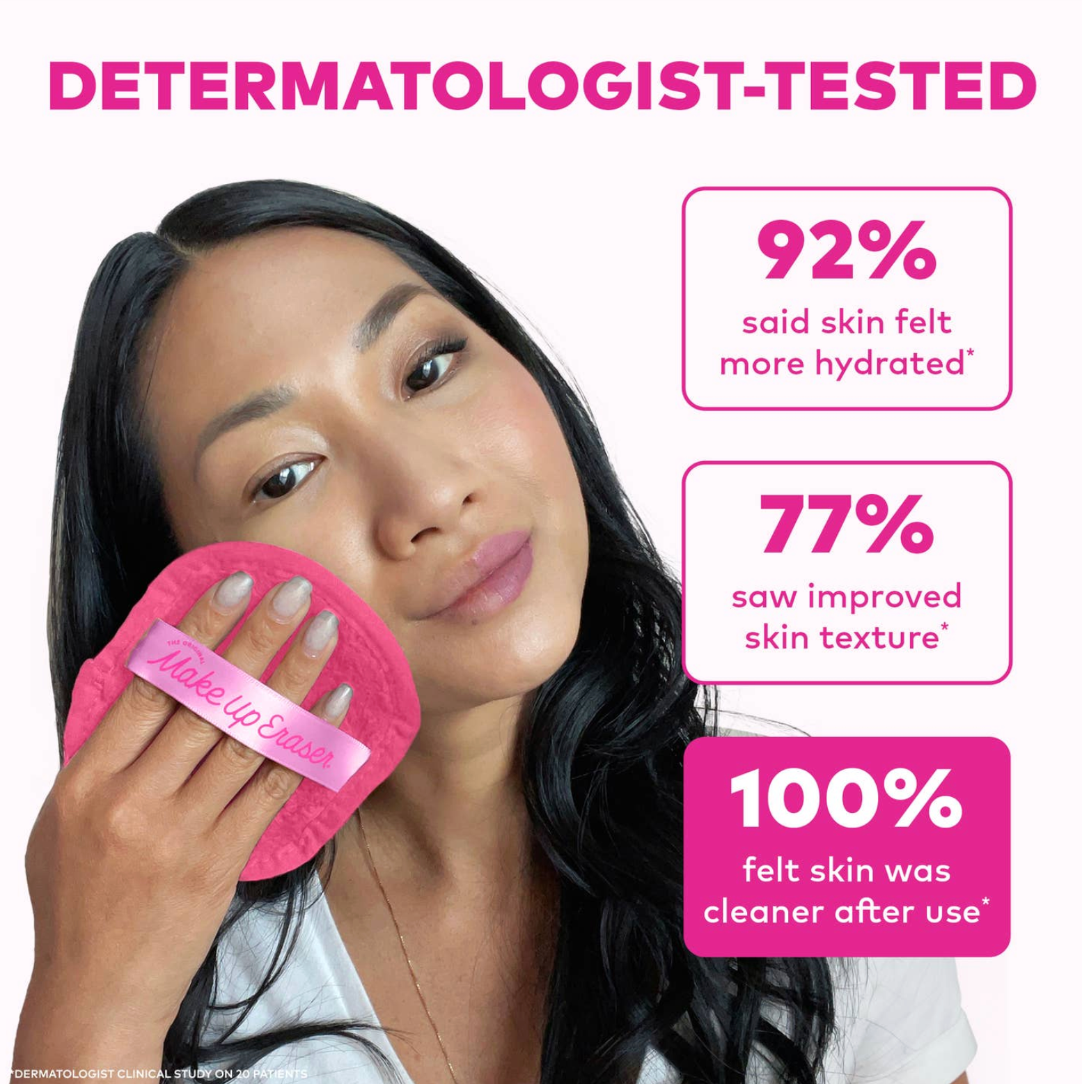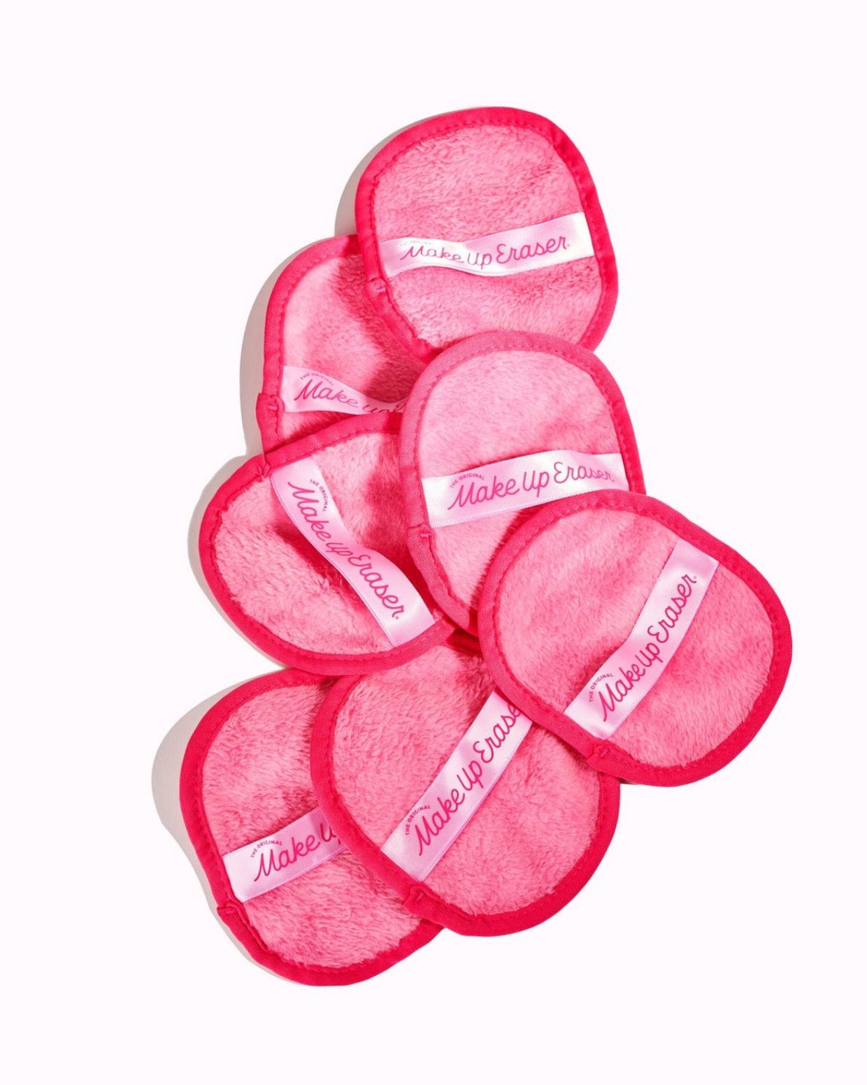 Includes 7 Daily MakeUp Erasers, 5in x 4in. Laundry bag included. Erase all makeup with JUST WATER™ including waterproof. Our patented, water-activated, cloud-soft fibers gently & easily remove all makeup & sunscreen from pores. 2 in 1 benefit: one side erases makeup & one side exfoliates skin. ✓ Dermatologist Recommended for sensitive skin ✓ SmartErase™ Technology ✓ Reusable & machine washable ✓ Great for everyday makeup The Original MakeUp Eraser® is non-irritating and non-drying, making it perfect for sensitive skin. It's non-comedogenic, safe for lash extensions, & entirely oil-free for a fresh, comfortable experience. ALCOHOL & FRAGRANCE FREE Wet with warm water. The warmer, the wetter, the better! Use gentle circular motions to erase makeup with the short fiber side. Flip to long fiber side (side with tag) to exfoliate the skin. Machine wash hot & dry. Dryer sheet & fabric softener safe. Machine wash before first use.