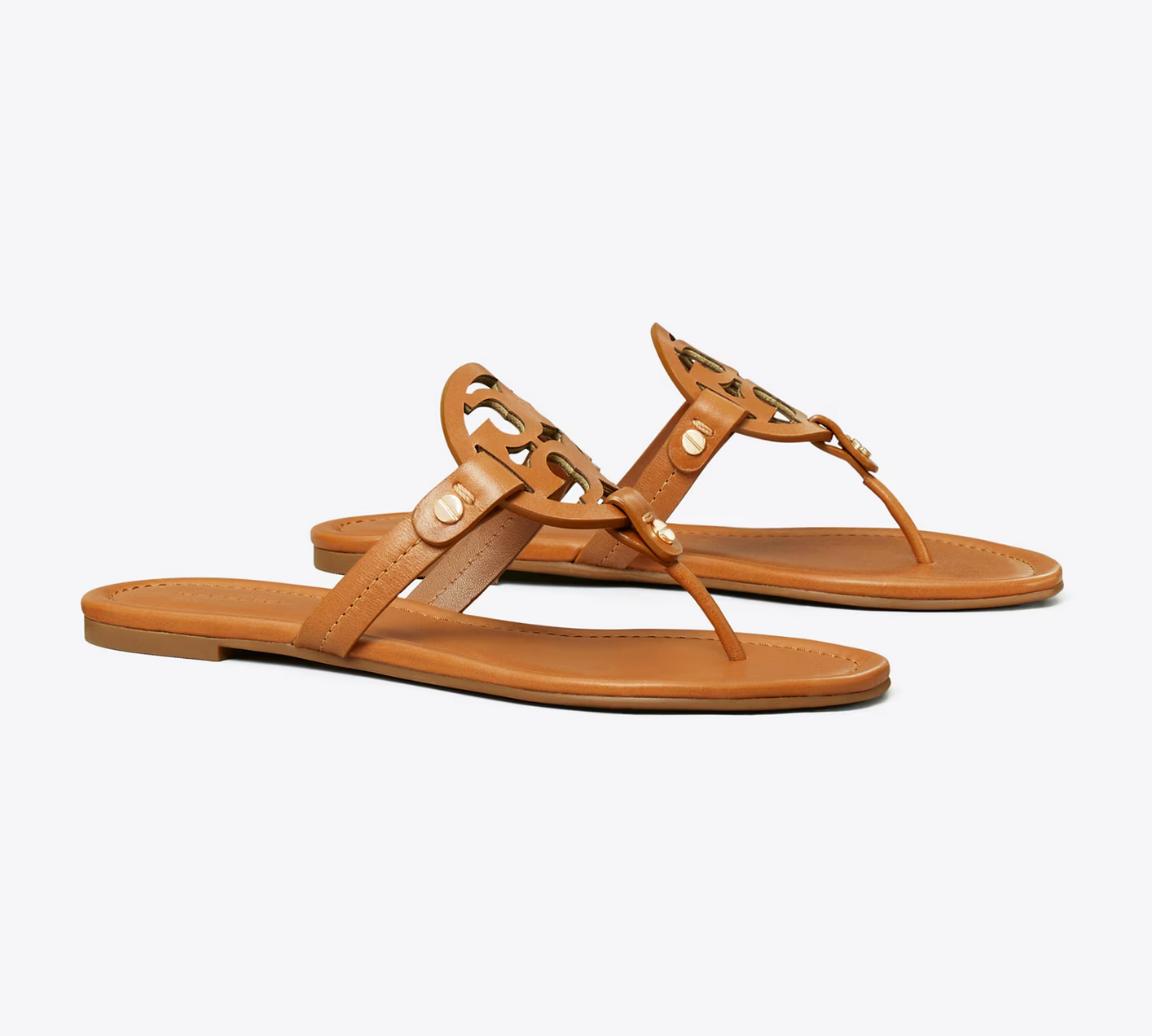 The  iconic leather sandal with a cult following. Tory Burch's original Miller is loved for its timeless style and exceptional comfort. The shoe’s classic  design has a lightly cushioned footbed with topstitching and laser-cut  logo with hand-painted edges fastened by gold rivets.The flat leather sandal is versatile and easy to style with feminine dresses and skirts, tailored pants or relaxed shorts.Tory Burch's women’s leather sandal is crafted  in partnership with a Leather Working Group-certified tannery, supporting high standards in leather manufacturing and chemical  management.