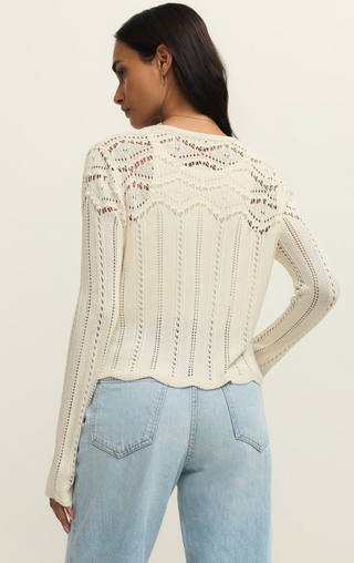 Mixed Stitch Half Zip - Ivory / Birch Stripe