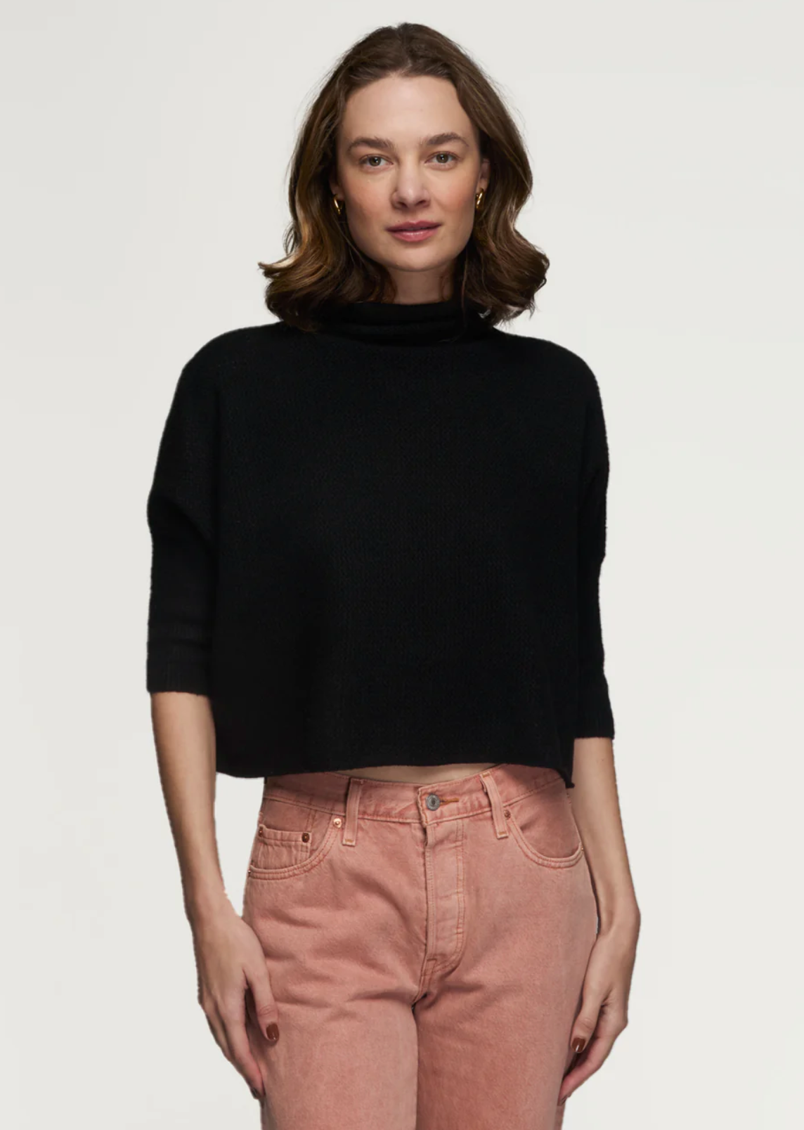 Boxy turtleneck 'Aja' sweater in solid criss-cross stitch