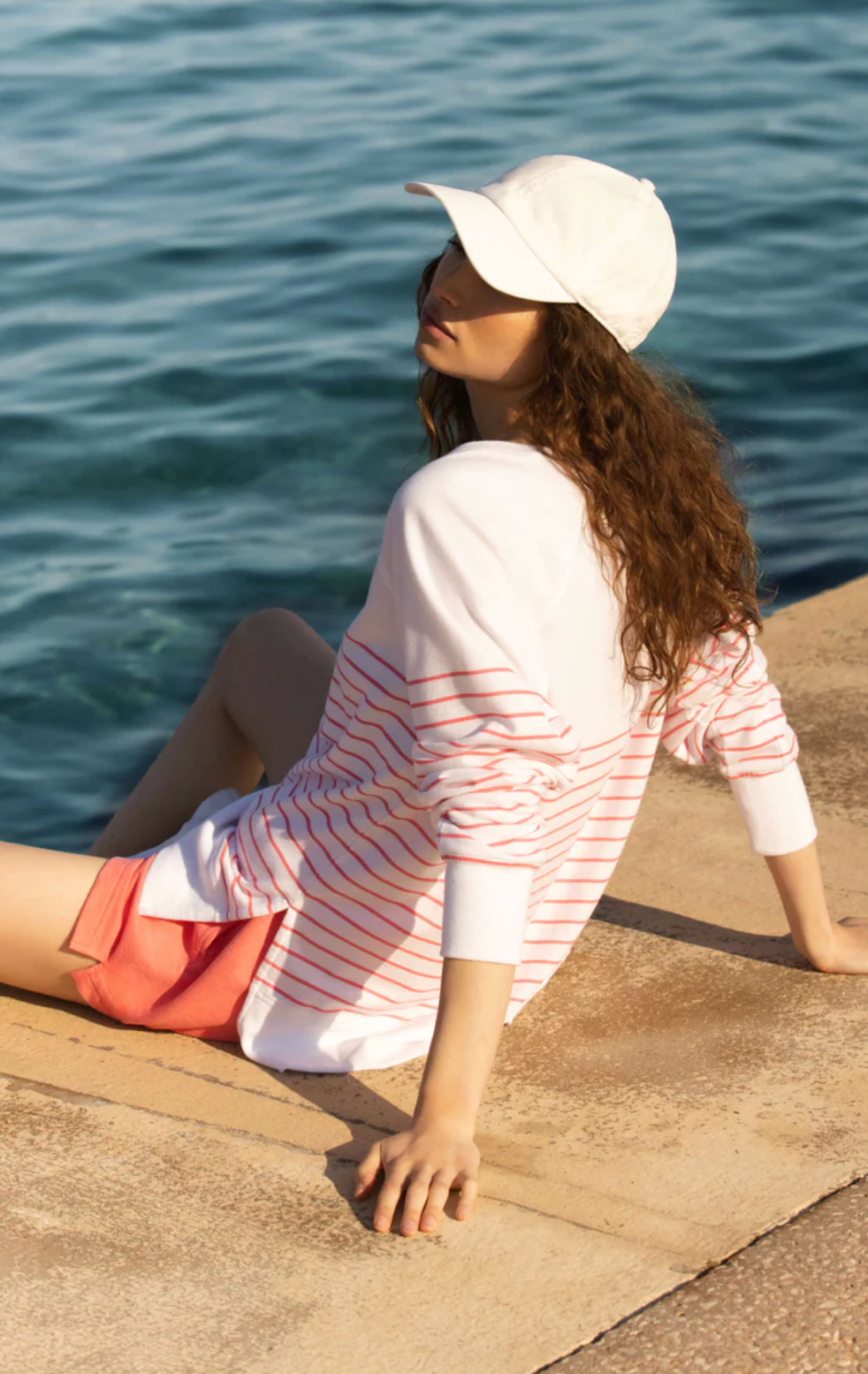 Weekender Stripe V Neck - White