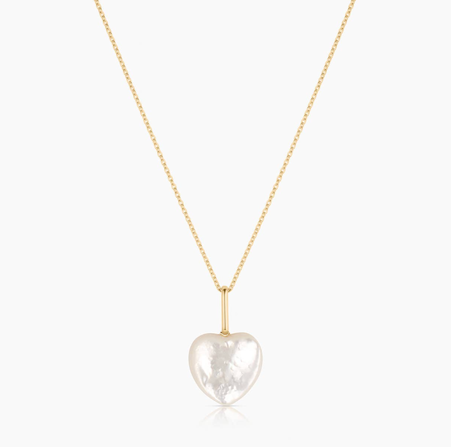 Our Gemma puffy heart in mother of pearl is an opulent shiny amulet to add a little beachy flair to any look. A perfect addition for beach destinations or your summer layers. 14k gold plated and hand-carved mother of pearl puffy heart charm. Best worn on any THATCH chain or choker measuring 4 mm thickness or less. Recommended on the Monet Choker, Vienna, Finn or Rae chain necklaces, depending on your preference. PRODUCT NOTE: Handle with care—Carved stone is delicate by nature. May vary in texture, color, shape and size. These subtle differences make each piece uniquely yours. Measures approximately: 19 mm x 17 mm x 6 mm