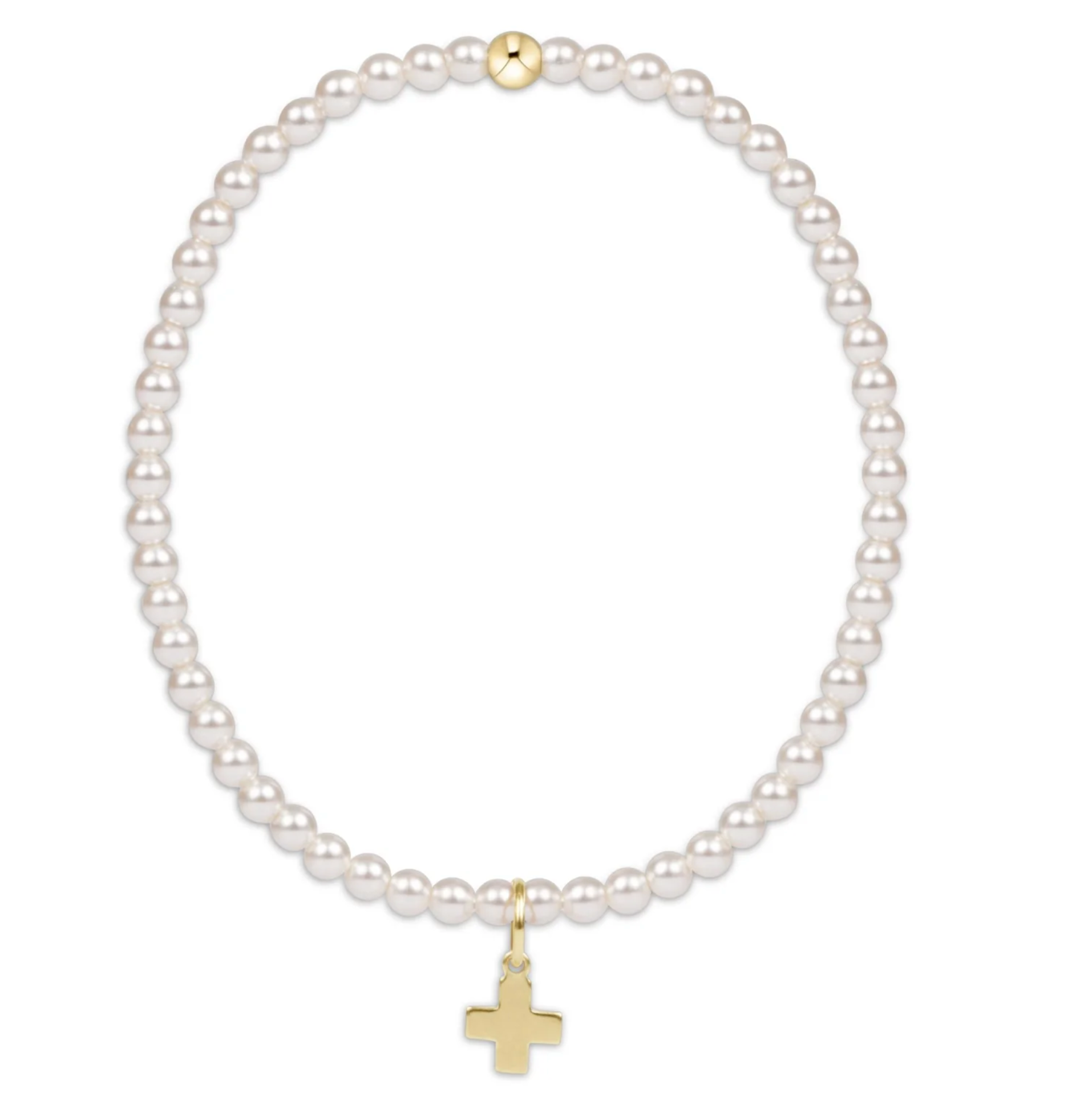 Classic Pearl 3mm Bead Bracelet - Signature Cross Gold