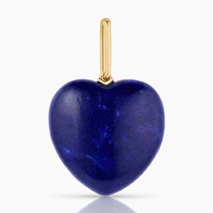 Our favorite new smooth and shiny hand-carved lapis heart charm. Wear alone for a cool pop of color, or mix in with your other layers for a fun neck stack. 14k gold plated and hand-carved lapis puffy heart charm. Best worn on any THATCH chain or choker measuring 4 mm thickness or less. Recommended on the Monet Choker, Vienna, Finn or Rae chain necklaces, depending on your preference. PRODUCT NOTE: Handle with care—Carved stone is delicate by nature. May vary in texture, color, shape and size. These subtle differences make each piece uniquely yours. Measures approximately: 19 mm x 17 mm x 6 mm